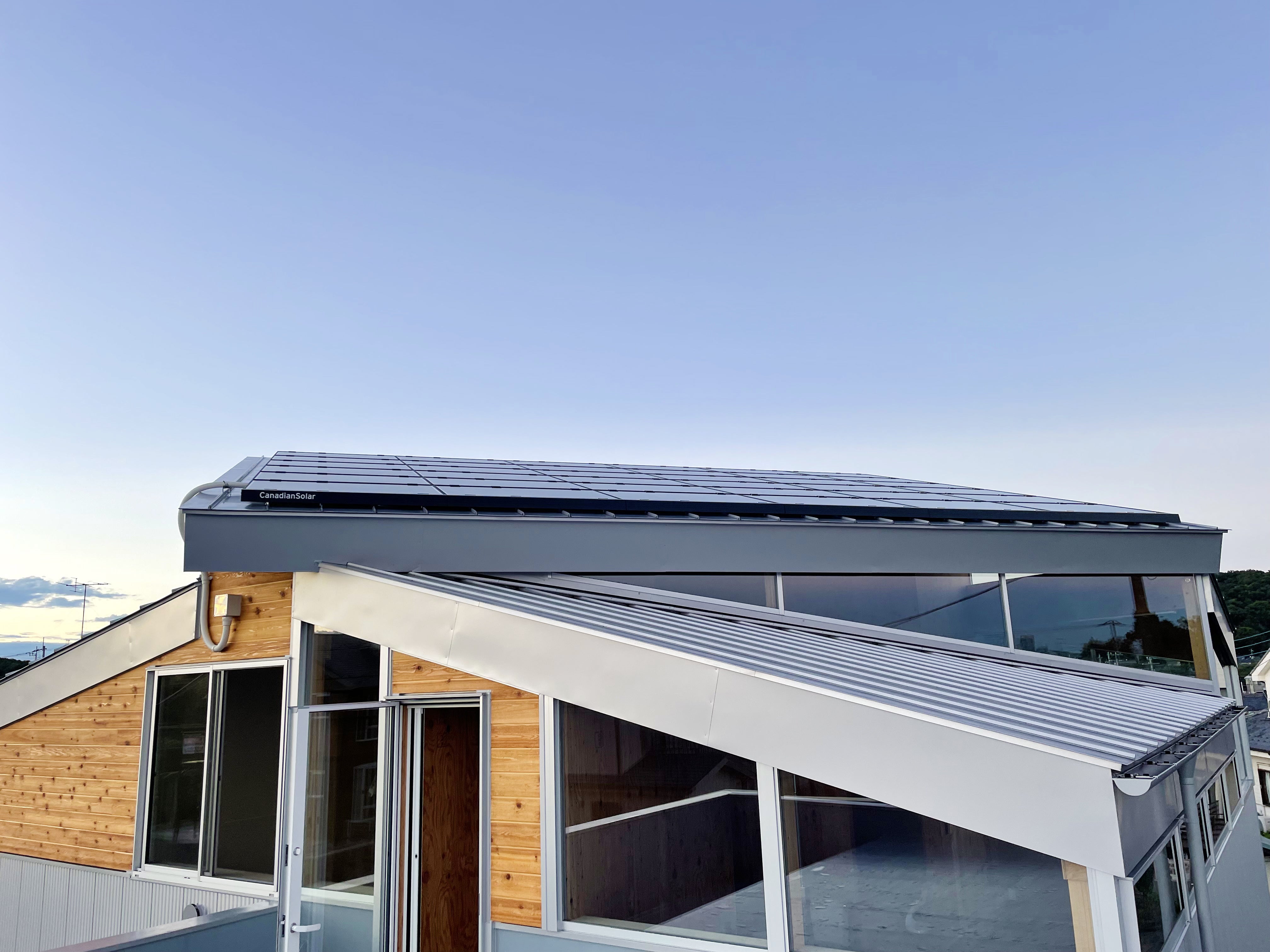 ソーラーパネルが乗ってる屋根