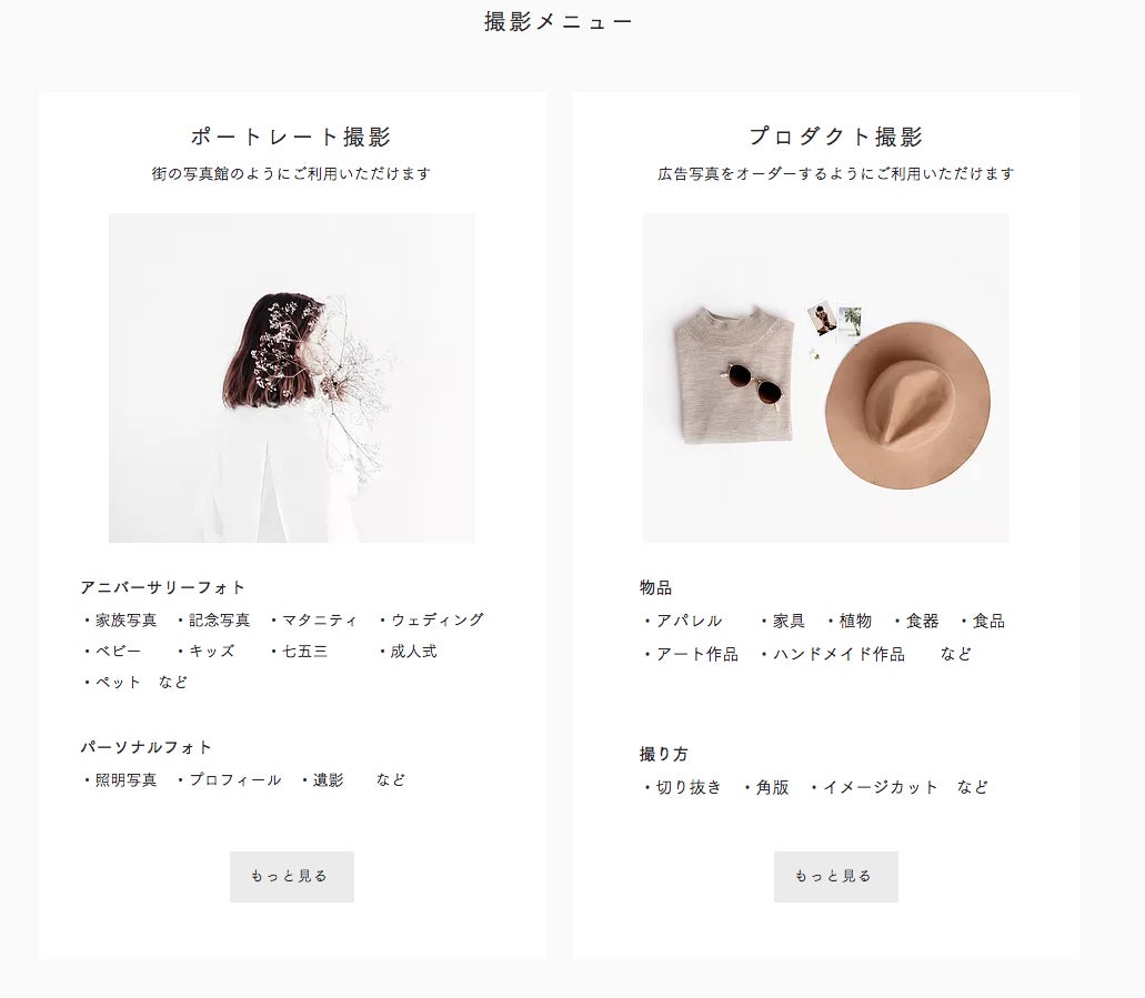 七五三やブライダルや家族写真などのアニバーサリーフォト、証明写真などのプロフィールフォトだけでなく、広告写真のような物撮りも承ります。