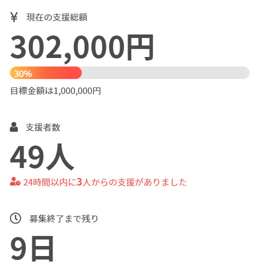 支援総額30%を超えました!