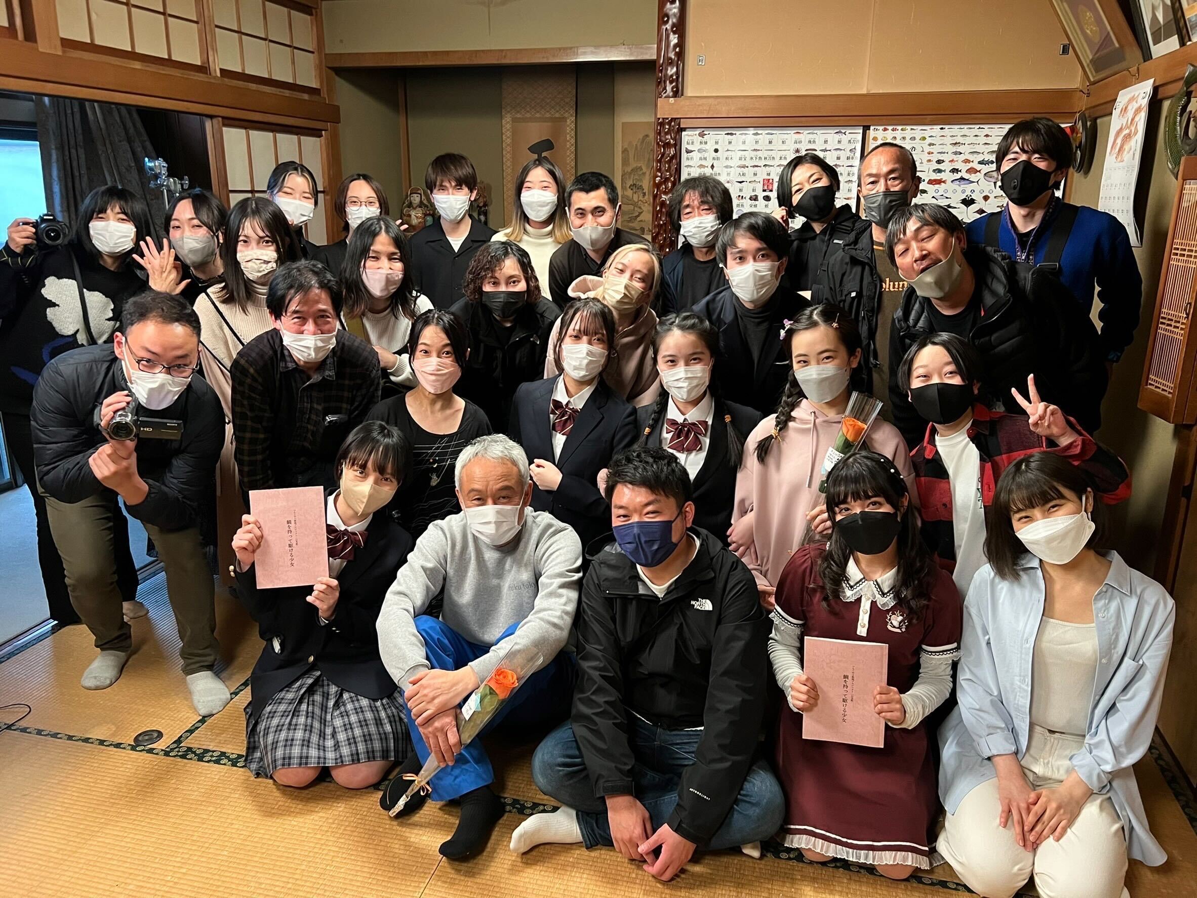 監督の山本陽将です。「鯛を持って駆ける少女」無事にクランクアップしました!コロナの影響で撮影がなかなかできない焦りはありましたが、まずは無事に撮影を終えたことに、ホッと胸をなでおろしています。「パワハラとセクハラのない現場。安心、安全、法令順守の現場にしましょうー!」ということをスタッフ一同に話していました。蓋を開けてみれば、愛と笑いと学びのある温かい現場でした。みんなが活き活きしていました。とっても幸せそうでした。※サプライズゲストで出演してくださった、二ッチローさんとキャストたちクラウドファンディングに協力してくださった皆さんの中にはキャストやスタッフのご家族、お友達がたくさんいることと思います。もしお会いする機会があったら、ぜひ現場の感想を聞いてみてください。きっとみんな興奮しながら、「楽しかった」「幸せだった」と口にすると思います。とはいえ、映画作りはここからが大変です。編集、主題歌、メイキング、ロゴやキービジュアルの作成などやることが多岐に渡ります。映画の出来はそうしたポストプロダクションにかかっているので、まだまだ気を抜かずに頑張ろうと思っています。これからも応援のほど、よろしくお願いします!山本陽将でした!