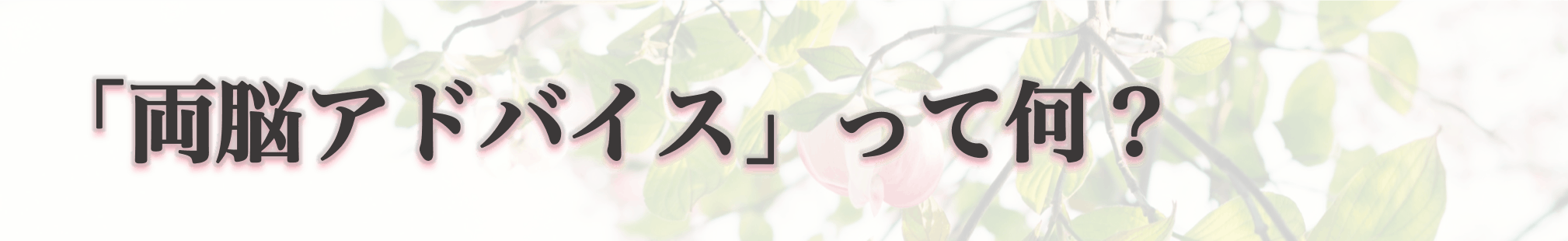 人生のなかには、うまくいかなくて深い悩みに入ってしまうとき、大きな決断を前に迷ってしまうときが必ずあります。「両脳アドバイス」は、こうしたときに、必ずあなたの支えになります。