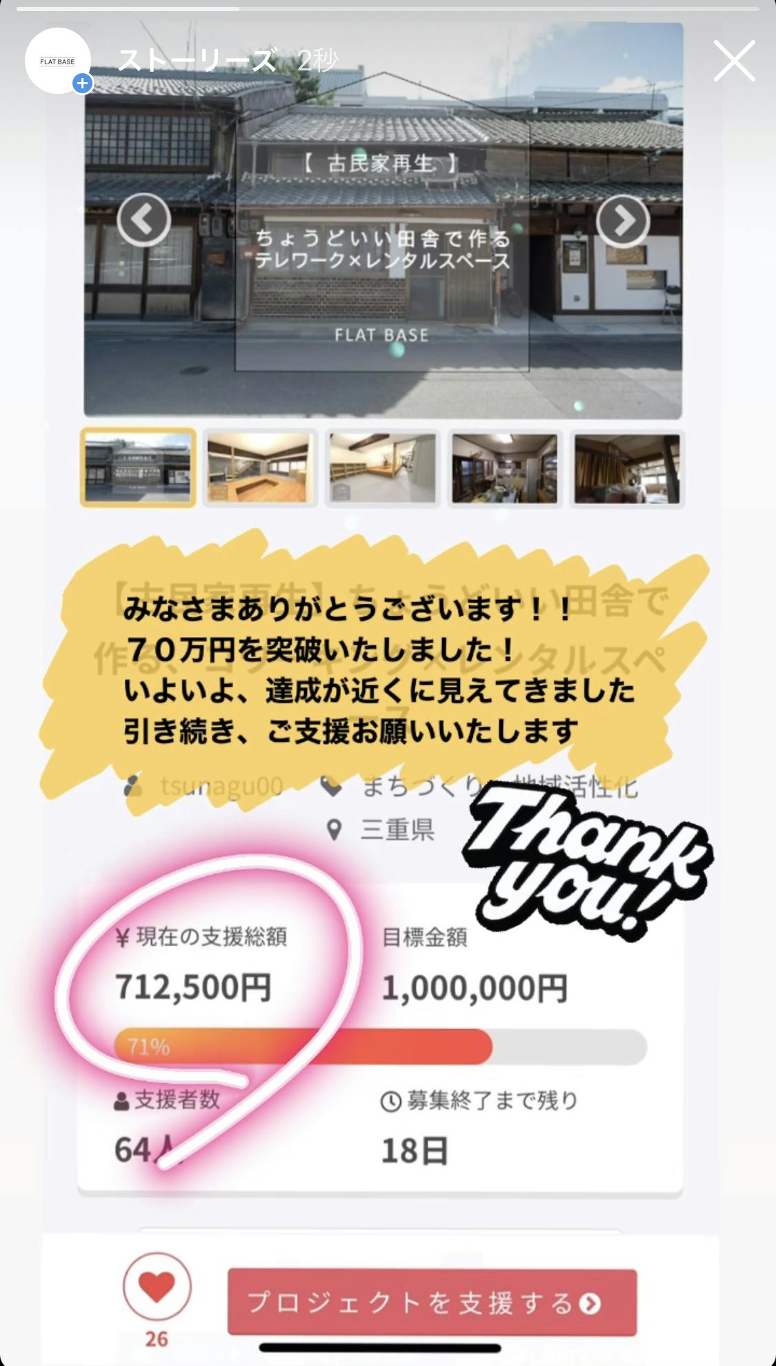おかげさまで70万円を突破いたしまして、いよいよ目標金額が見えてまいりました!