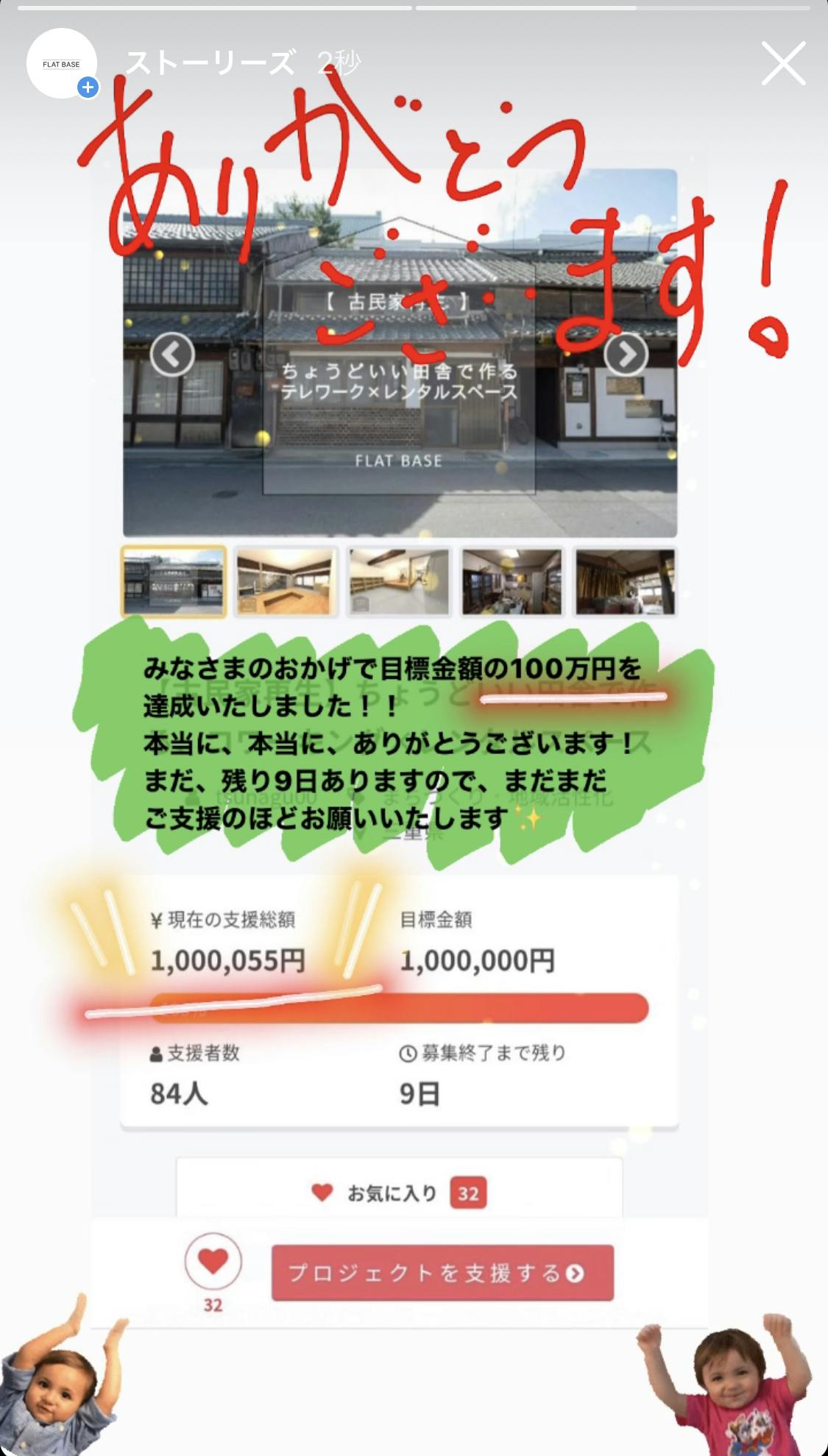 皆さまのご支援のおかげで、目標金額の100万円を達成いたしました!