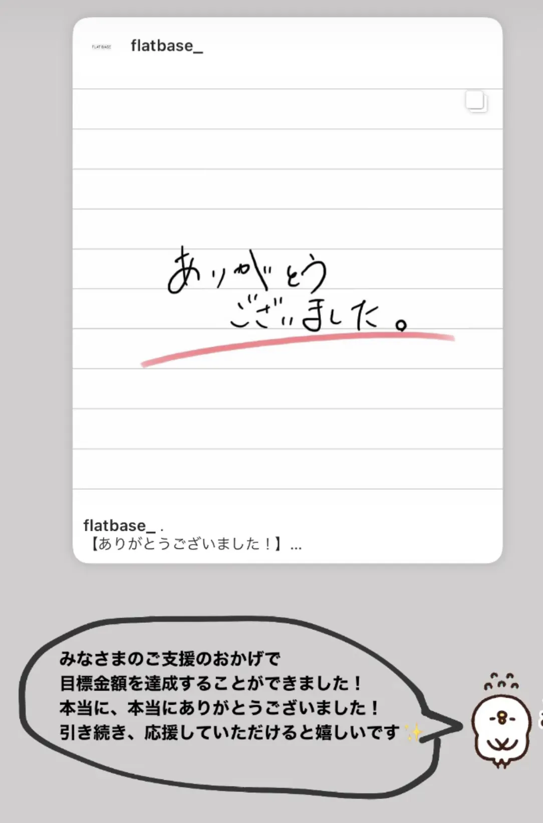 ご支援をいただいた時点でのご連絡が出来なかったのですが、これから順次直接お礼をお伝えできる方にはご連絡をさせていただきたいと思います。