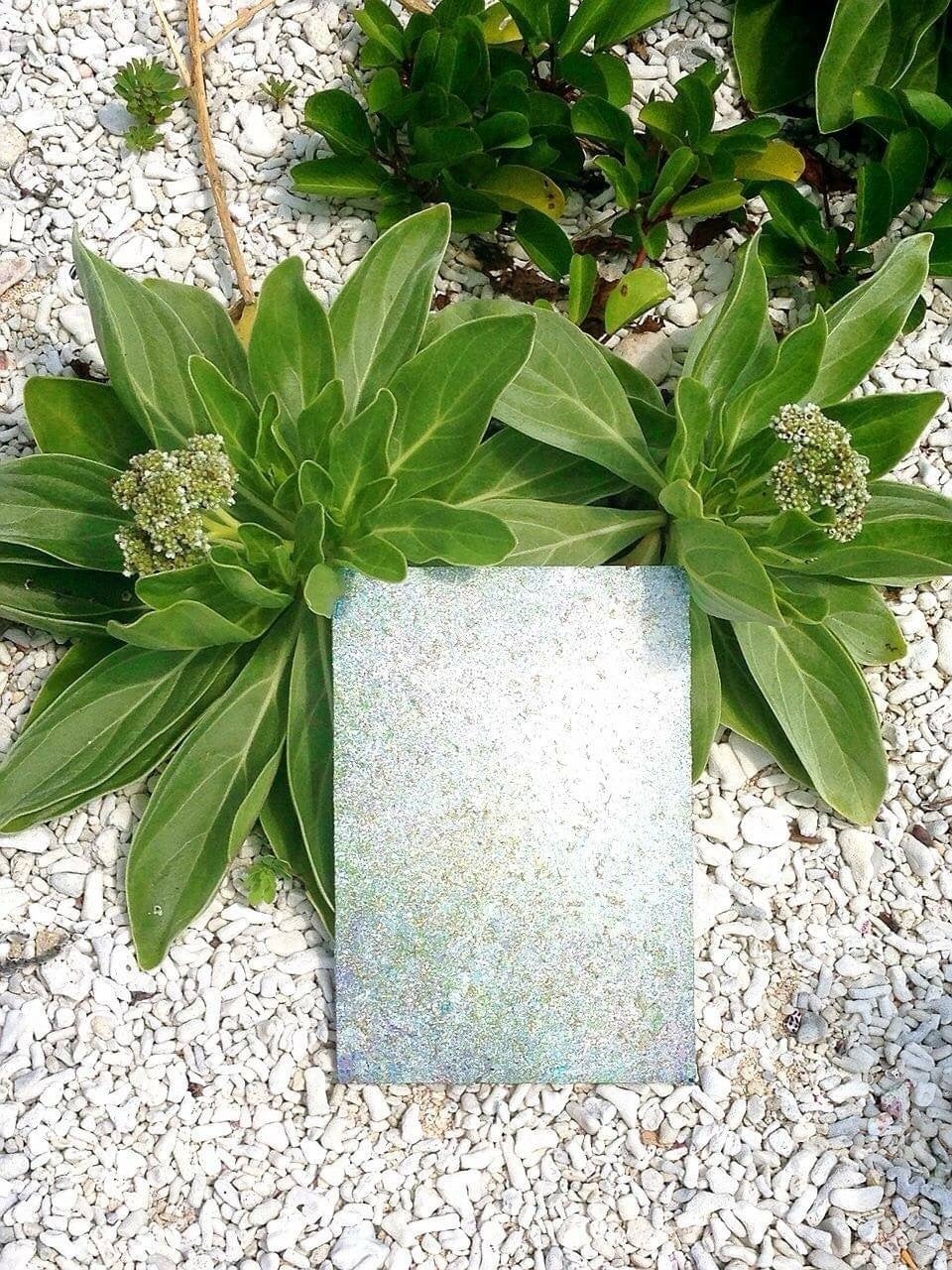 沖縄の海から頂いた砂. 海や森の水.赤土. 夜光貝.聖地でブレンドしたオイル.ラメなどを混ぜている〜