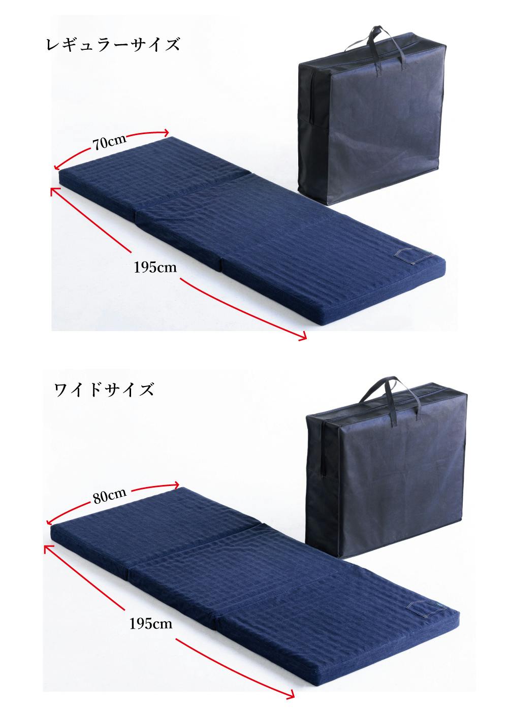 サイズはレギュラーサイズで70cm×195cm、ワイドサイズで80cm×195cm。厚さは7cm。