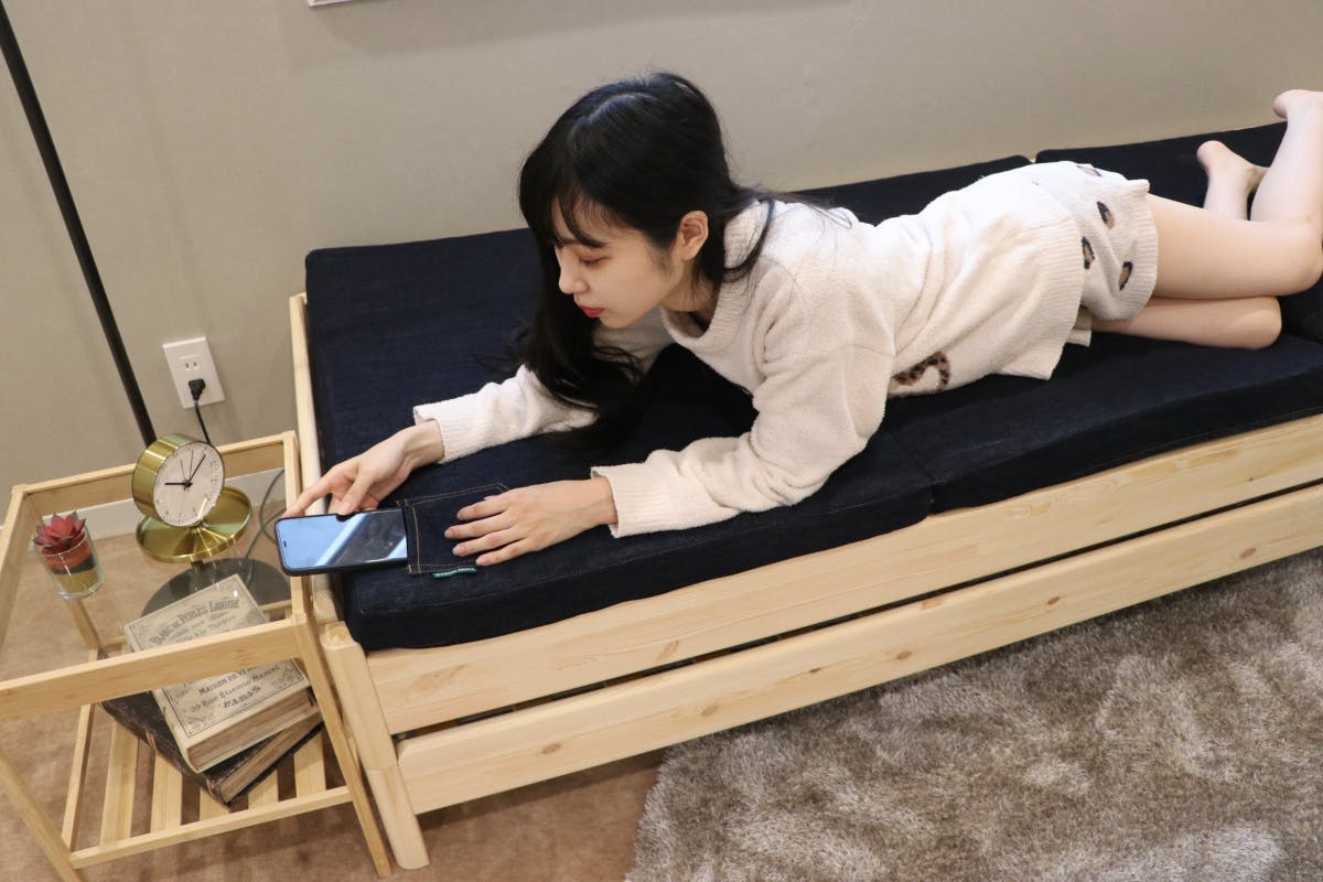セミシングルのベッドにしいてコンパクトベッドとして使うこともできます。