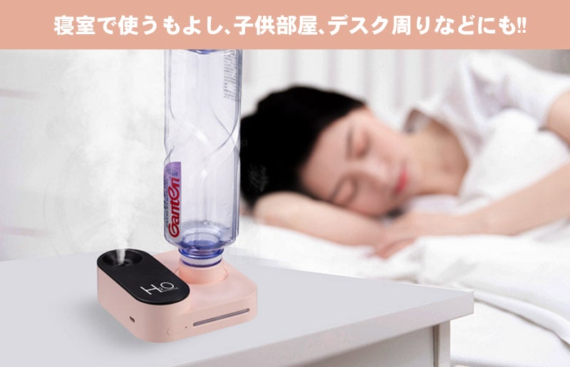 手の平サイズの小さくて可愛い加湿器!!ペットボトルを挿すだけの簡単操作!! 充電して持ち歩け、外出中、乾燥が気になる場面で大活躍。インスタ映えも間違いなし!