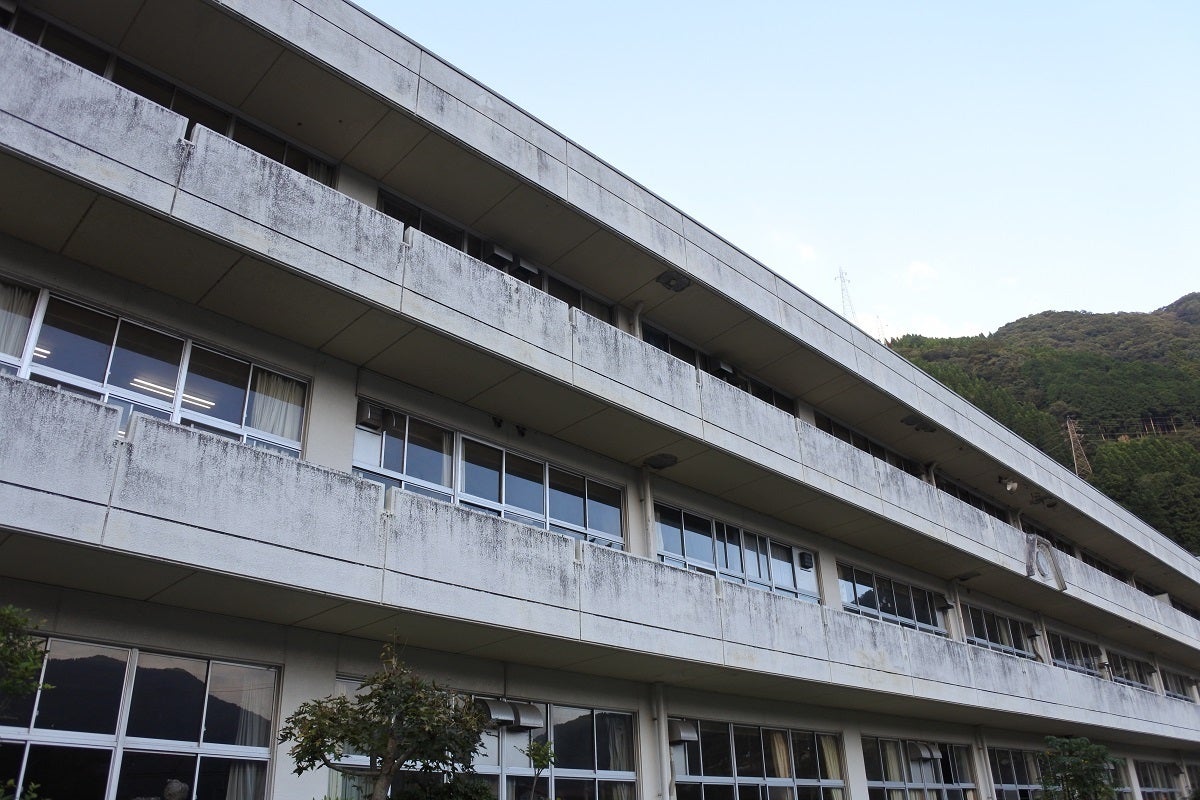 西濃学園中学校は岐阜県揖斐川町藤橋地区の旧藤橋小中学校を、西濃学園久瀬校(高等部)は同町久瀬地区の旧久瀬小学校の校舎を使わせていただいています。学園では「学校ピカピカ大作戦!」と名付けて、生徒を中心に毎朝、清掃活動を行っています。とはいえ、どうしても業者さんの手を借りなければならない箇所がいくつか…。その一つが壁の黒ずみです。久瀬校(高等部)の校舎はそれほど目立ちませんが、中学校の校舎はだいぶ黒ずみが目立つようになりました。できれば綺麗な校舎で新入生を迎えたい。これがプロジェクトを始めたきっかけです。