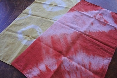 ★西濃学園オリジナル草木染大判ハンカチ(46㎝×48㎝)西濃学園の地域学習の一つとして草木染のワークショップを予定しています。指導してくれるのは岐阜県揖斐川町春日地区にある「手しごと屋RICO-NAGI」で活動されている岩田真理子さん。草木染のハンカチがどんな色あいでどんな模様になるかはお楽しみに!
