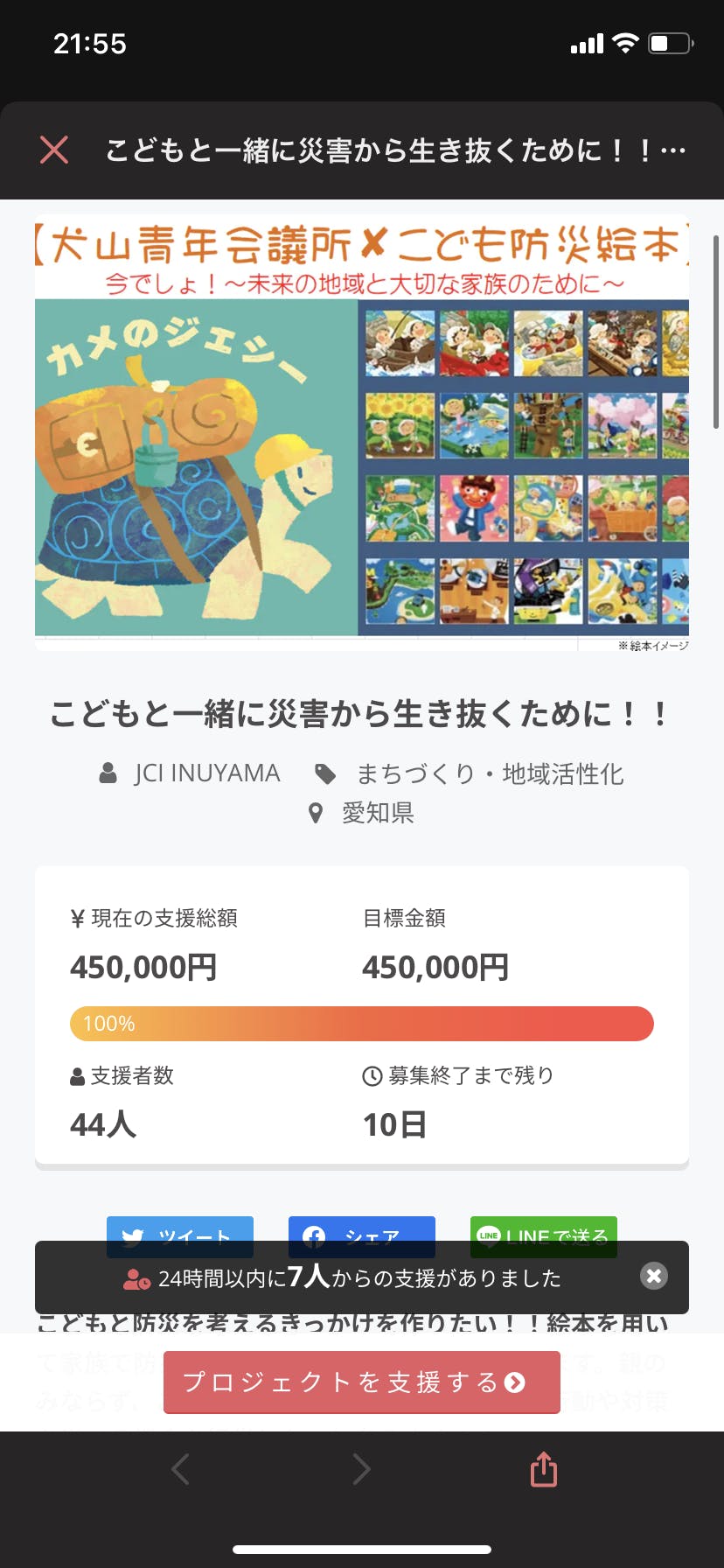 このプロジェクトは、2021/10/11に募集を開始し、 45人の支援により 455,000円の資金を集め、 2021/10/29に募集を終了しました