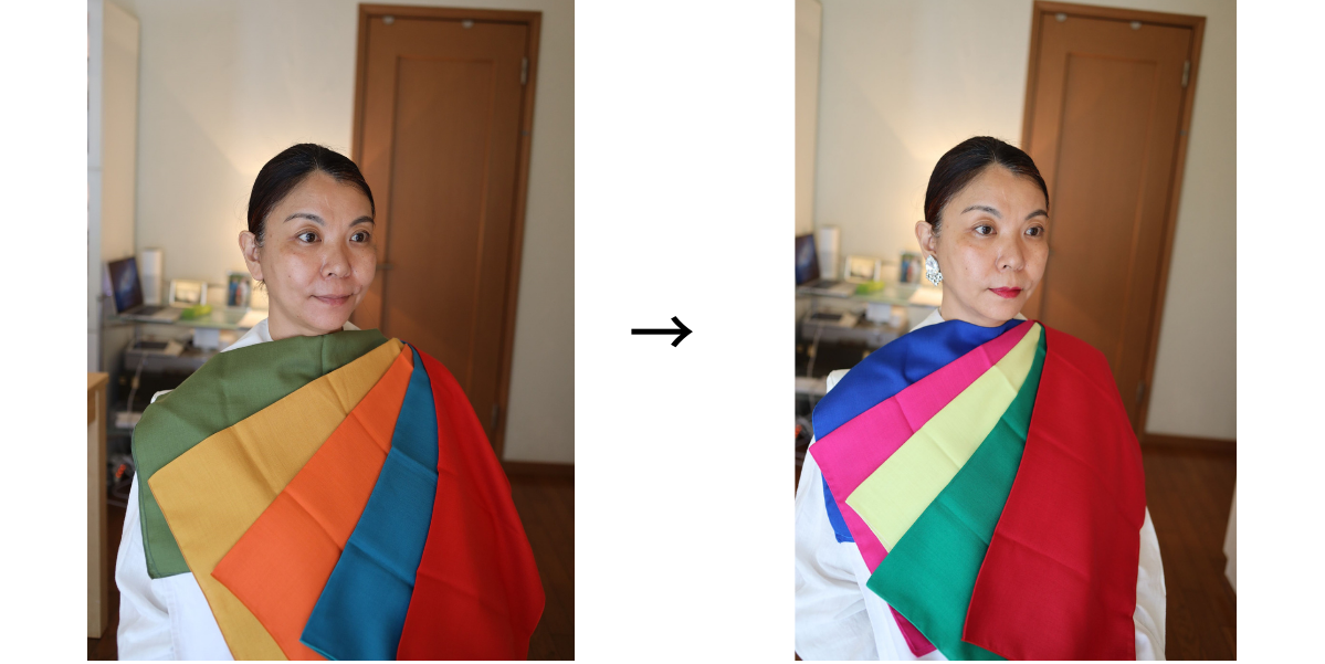 似合う色とそうでない色では、こんなにも顔の輝きが違う!