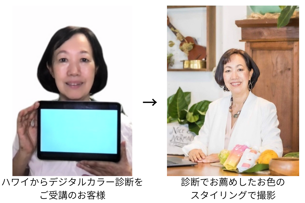デジタルカラー診断なら、世界中どこでも、カラーコンサルタントの確かな診断を受けることが可能になります。子育て中、地方、海外在住、高齢、コロナ禍などの理由で、パーソナルカラー診断を諦めていた方にお勧めします。