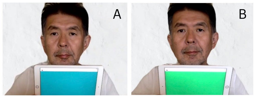 (A)夏の緑よりも(B)春の緑の方が、お肌がトーンアップして元気に見えます