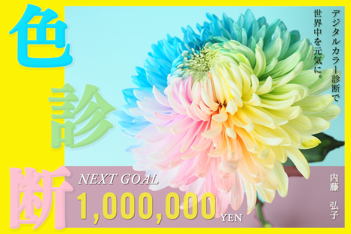 デジタルカラー診断にご支援くださいました皆様へ皆様のおかげです!本日、デジタルカラー診断のクラウドファウンディング、ネクストゴール 1,000,000円を達成することが出来ました!クラファン開始7時間で100%ゴール達成、8日目にしてネクストゴール 203% 達成という、素晴らしい成果を上げられているのは、ひとえに、ご支援くださいました皆様のおかげです。どうもありがとうございます。クラファンは、ご支援いただいたお金以上に、皆様のお気持ちや、エネルギーをかけていただいているのだと思います。そうした皆様のお心に応えるべく、より多くの方にデジタルカラー診断を知っていただけるようにさらに次のゴール、1,500,000円 を設定します。どうぞ引き続き、お見守りくださいますようお願いいたします。色で世界をハッピーに!内藤弘子でした。