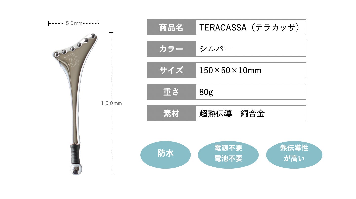 その中でエステサロンを3000件以上回り、電磁波による酸化から起きているお客様のお顔のたるみを自宅でもなんとかケアできないかと考え研究した結果、今回の「TERACASSA」を作り出すことに成功。