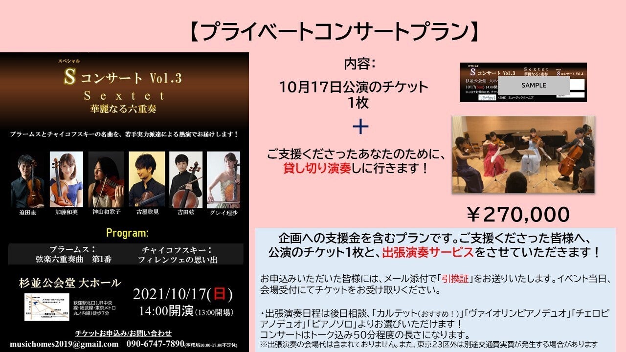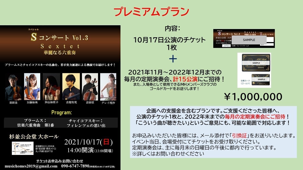企画への支援金を含むプランとなります。若い演奏家たちを応援したい!という方向けの特別プラン!