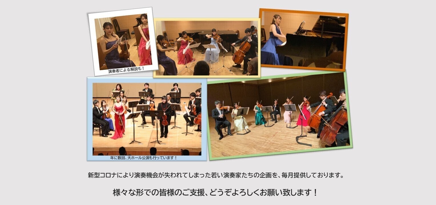 私たち音楽家団体ミュージックホームズは、コロナ禍による影響で演奏機会が激減してしまったクラシック音楽の若いプロ奏者達にスポットを当て、彼らによる演奏会の企画/運営活動をしております。徹底したコロナ対策のもと、観客の皆様にはお安く気軽に楽しんでいただける演奏会作りを毎月、かれこれ1年以上続けています。