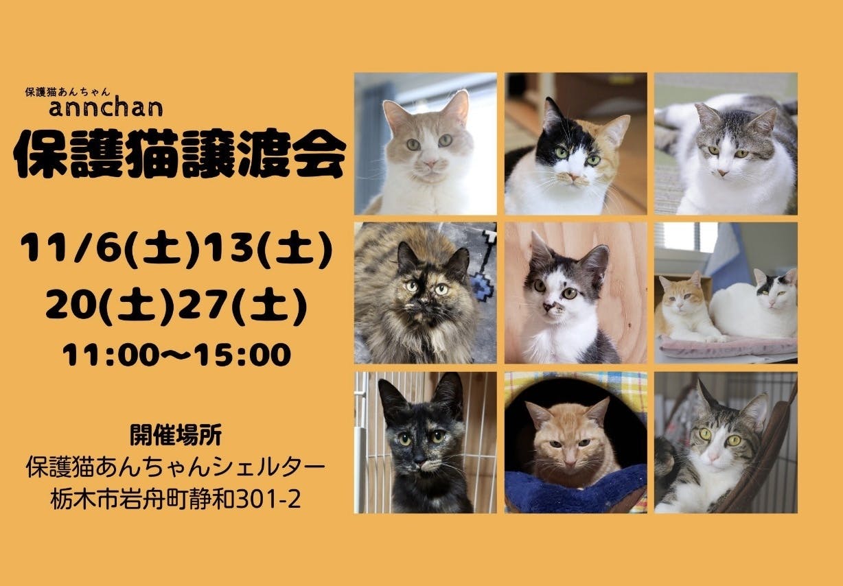 今月は【保護猫譲渡会】毎週土曜日