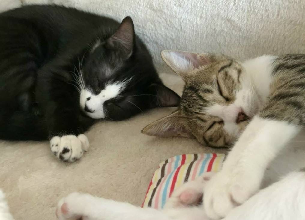▲今では里親さん宅で先住猫と仲良く寝ています。