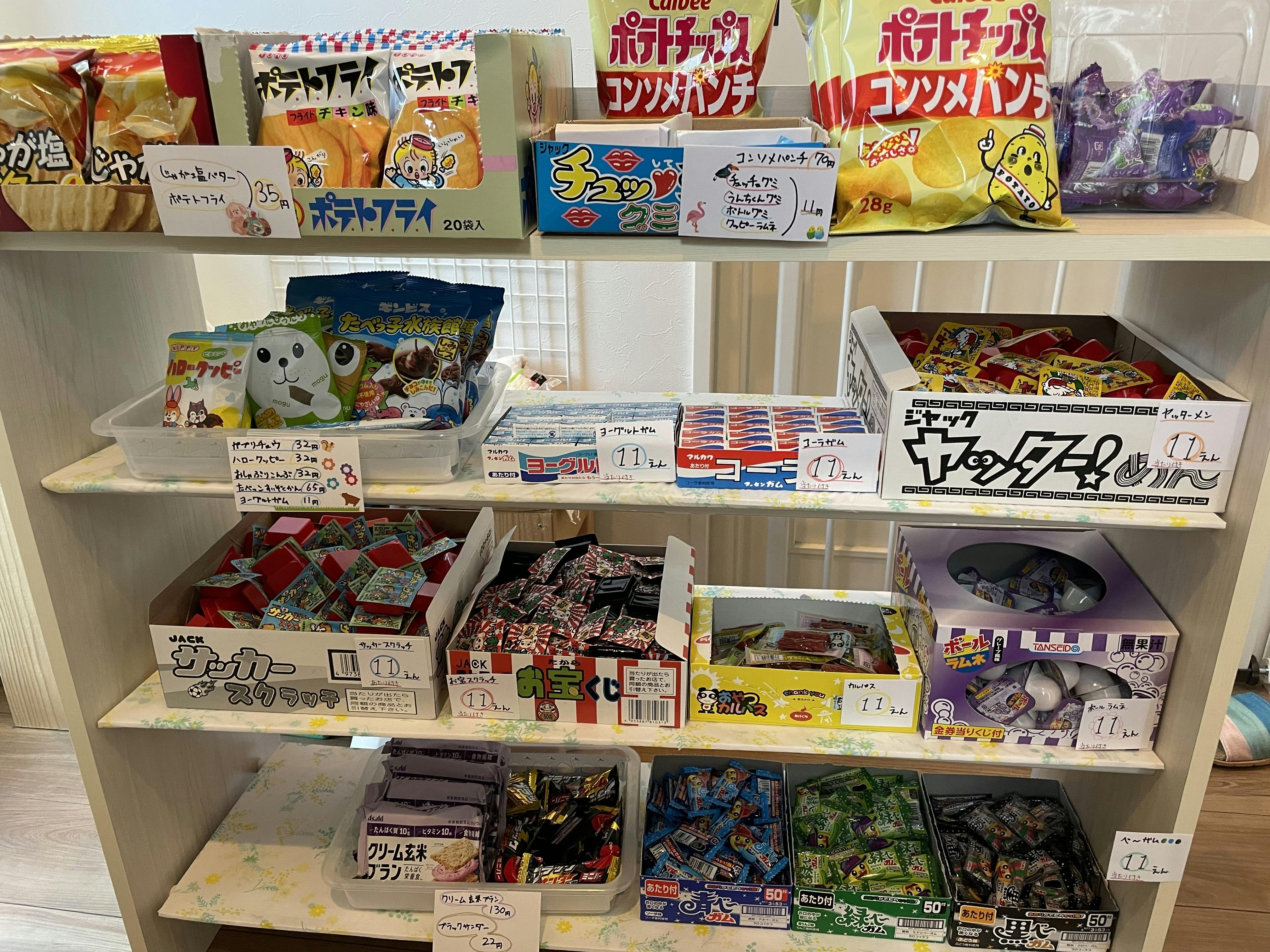 皆様からのご支援のおかげで本格的再Openに向けて目処が立てられそうなので、まずはもう一度子ども達に再Openを知らせるために、少〜しですがお菓子を並べて一段階めのOpenをすることとなりました⭐︎