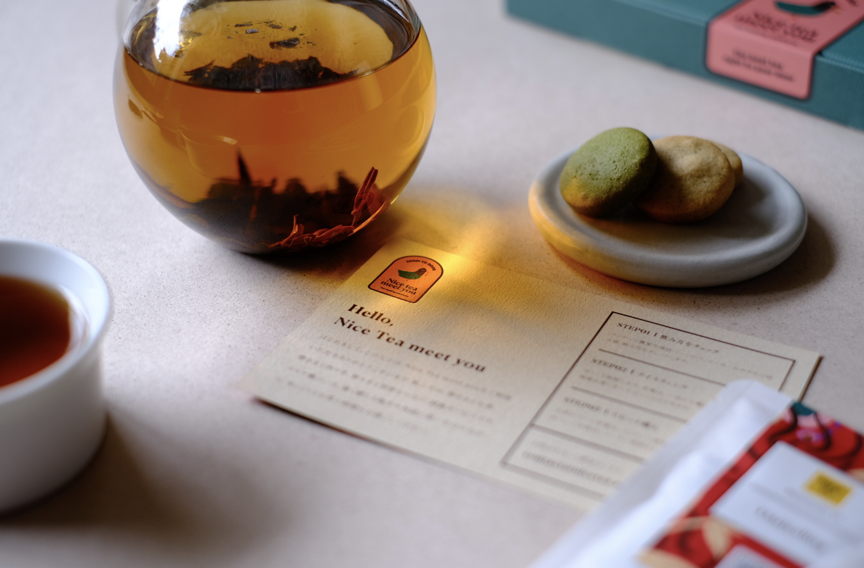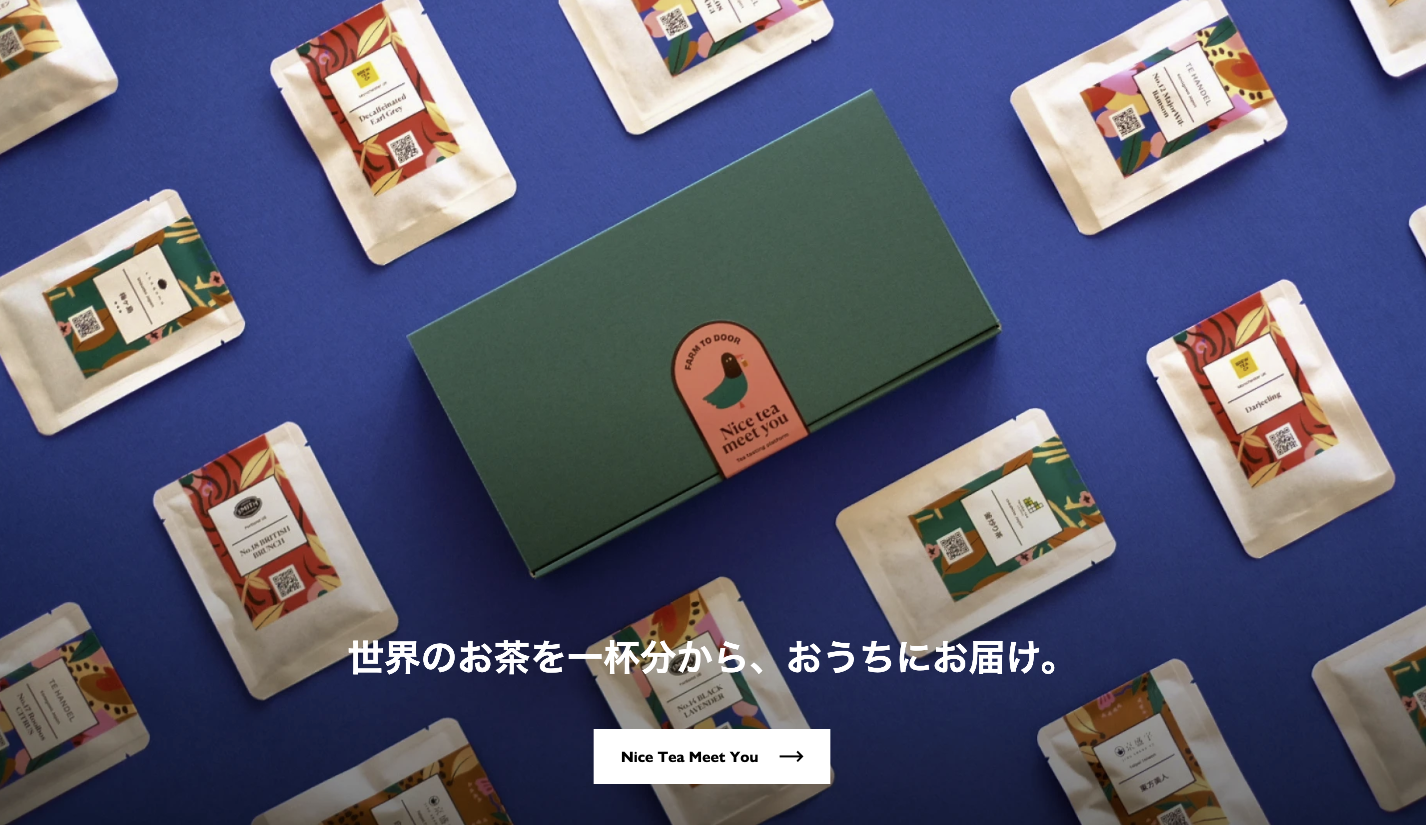 NICE TEA MEET YOU(ナイス・ティー・ミー・チュー)は、世界中から厳選した厳選ブランドの良質な茶葉を試飲サイズに小分けし自宅にお届けするサービスです。新型コロナウイルスの蔓延により、海外渡航や店舗での試飲の機会が失われつつある中、お茶とティーカルチャーに情熱を持つ2人のメンバーにより2021年4月に創設されました。21年10月現在、16ブランドから選りすぐった66種類のお茶を、日本中のティーラバー達にお届けしています。