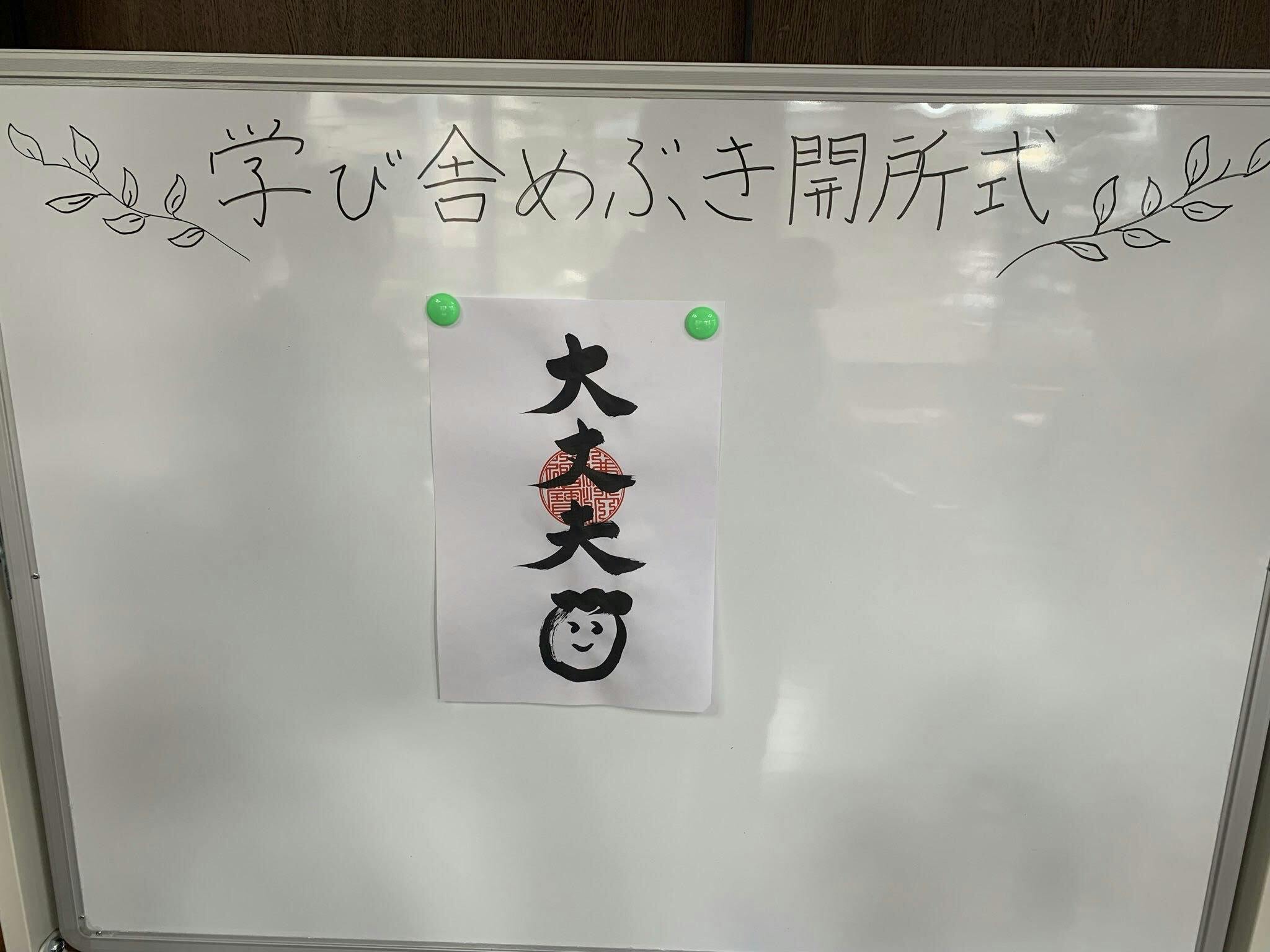 写真の「大丈夫」の字は、長野市にある曹洞宗の寺院<裁松院>のご住職さんが、学び舎めぶきのために、と書いてくださったものです。