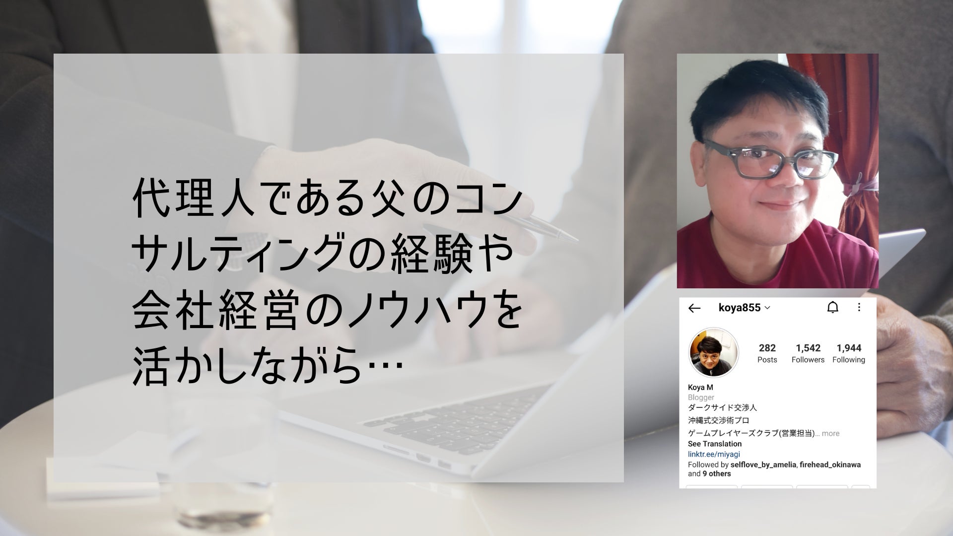 会社設立及びコンサルティングの実績・ノウハウといてしましては、代理人である宮城浩也が約10年ほどコンサルの事業を展開してまいりました。コンサルティング会社を行う前は、沖縄県にございました道路建設業者にて営業及び交渉役として、橋の建設や国道などの多くの公共事業に携わってまいりました。そこで得た交渉やコンサルのノウハウを活かしWillPowerという事業を起こし、そして、今回のGamePlayersClub設立・会社設立という動きになっております。