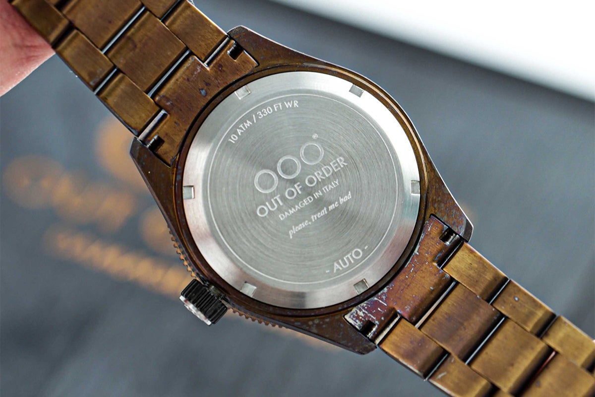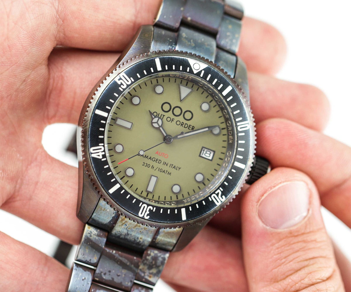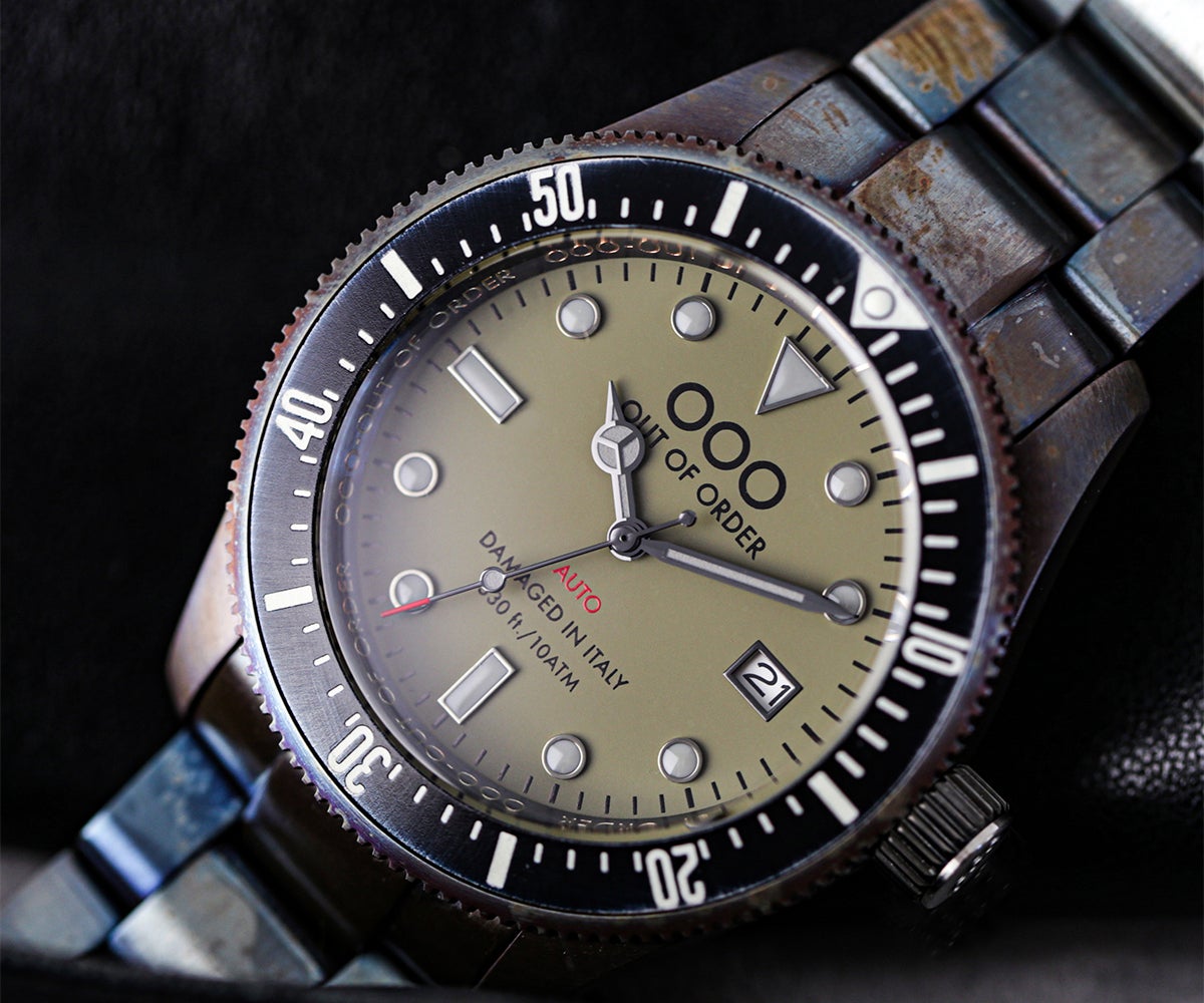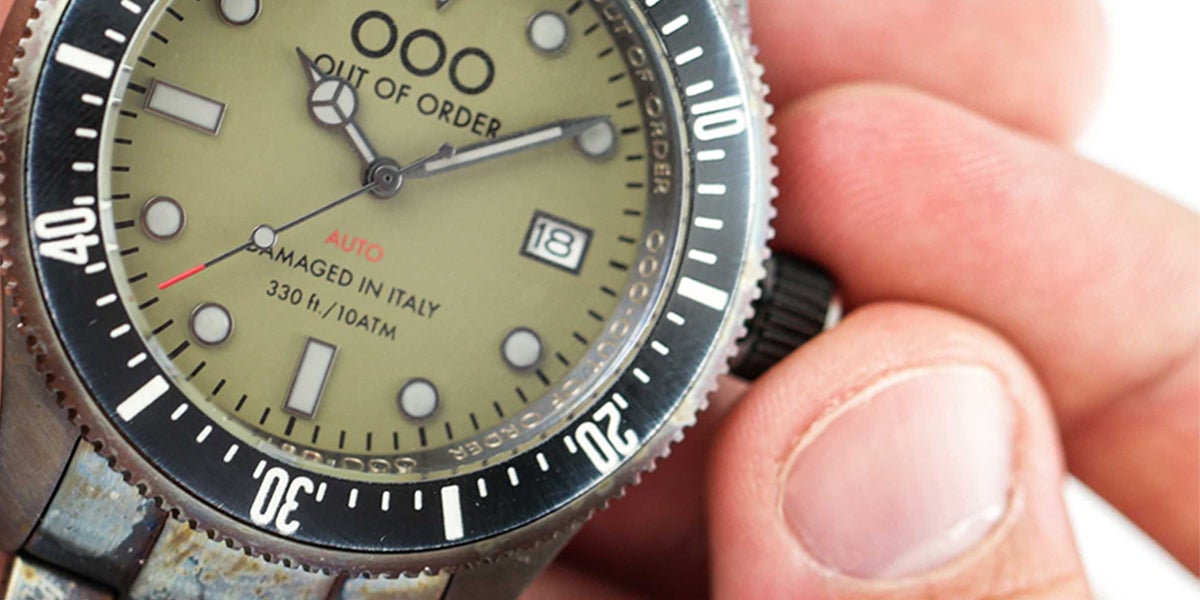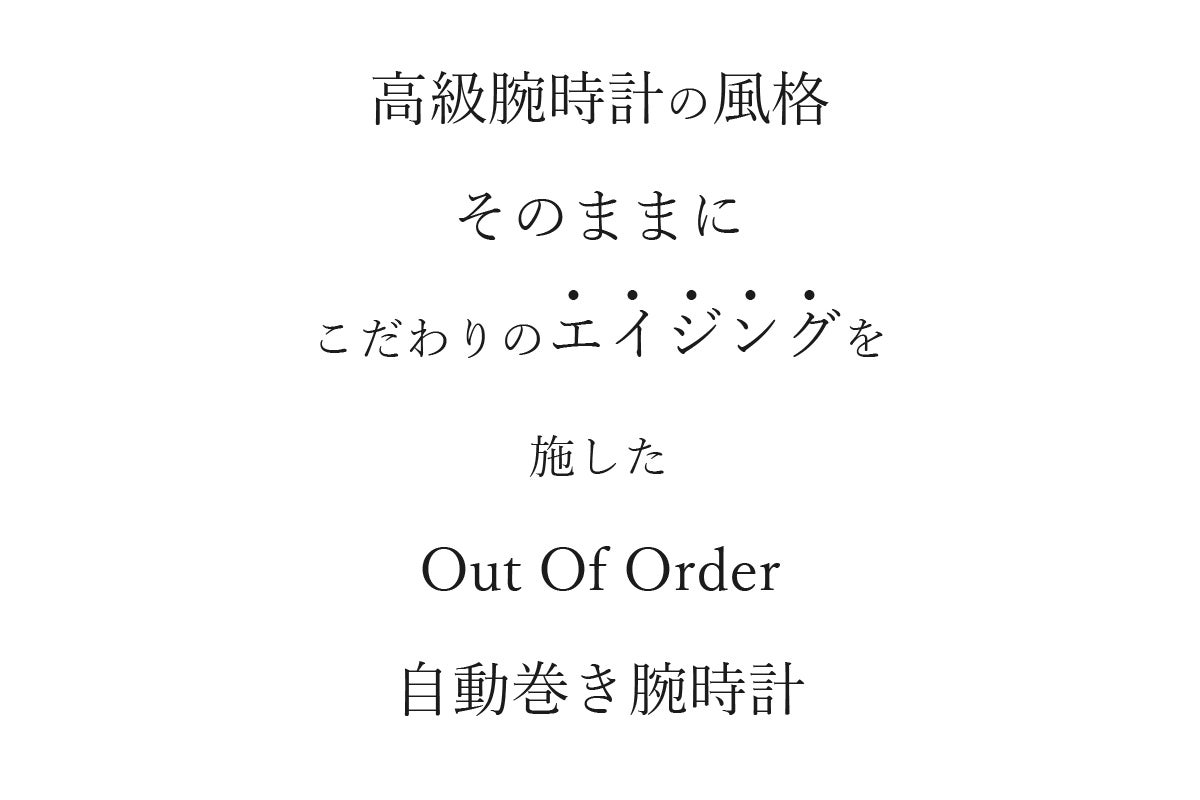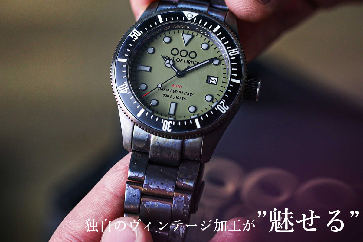 OOO(Out Of Order)の時計は、本体にあえてサビや長年使ったような汚しをつけ、