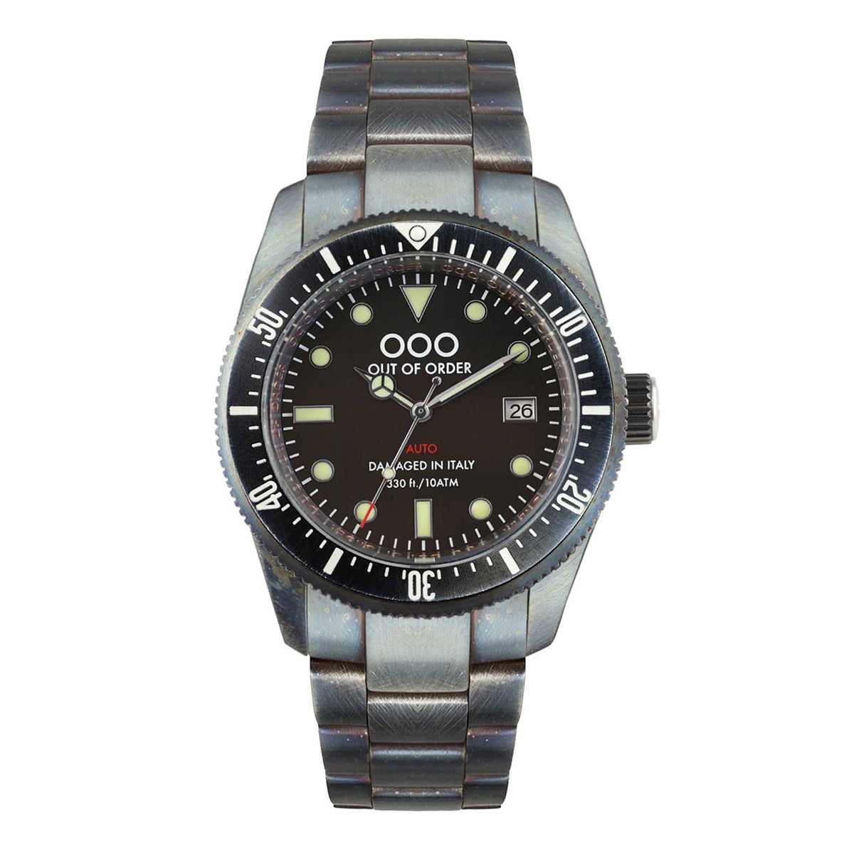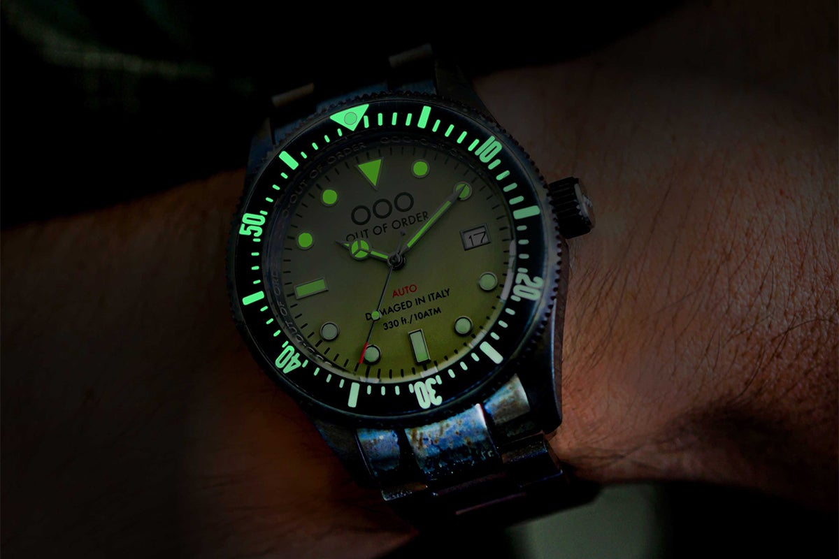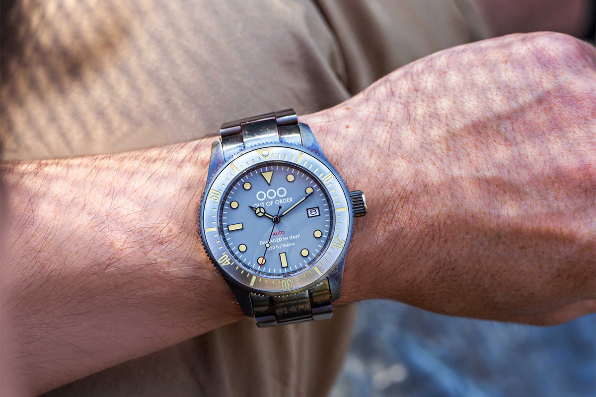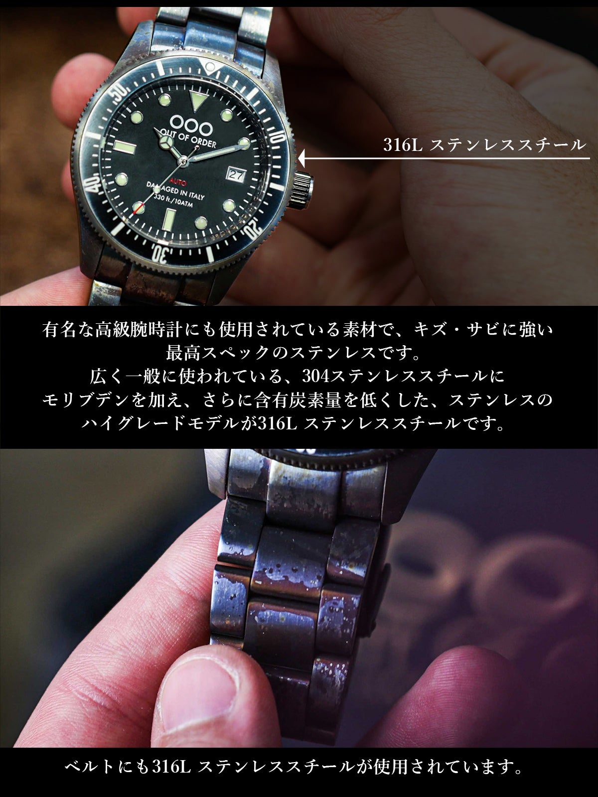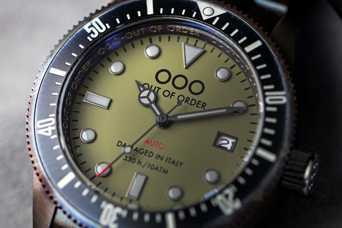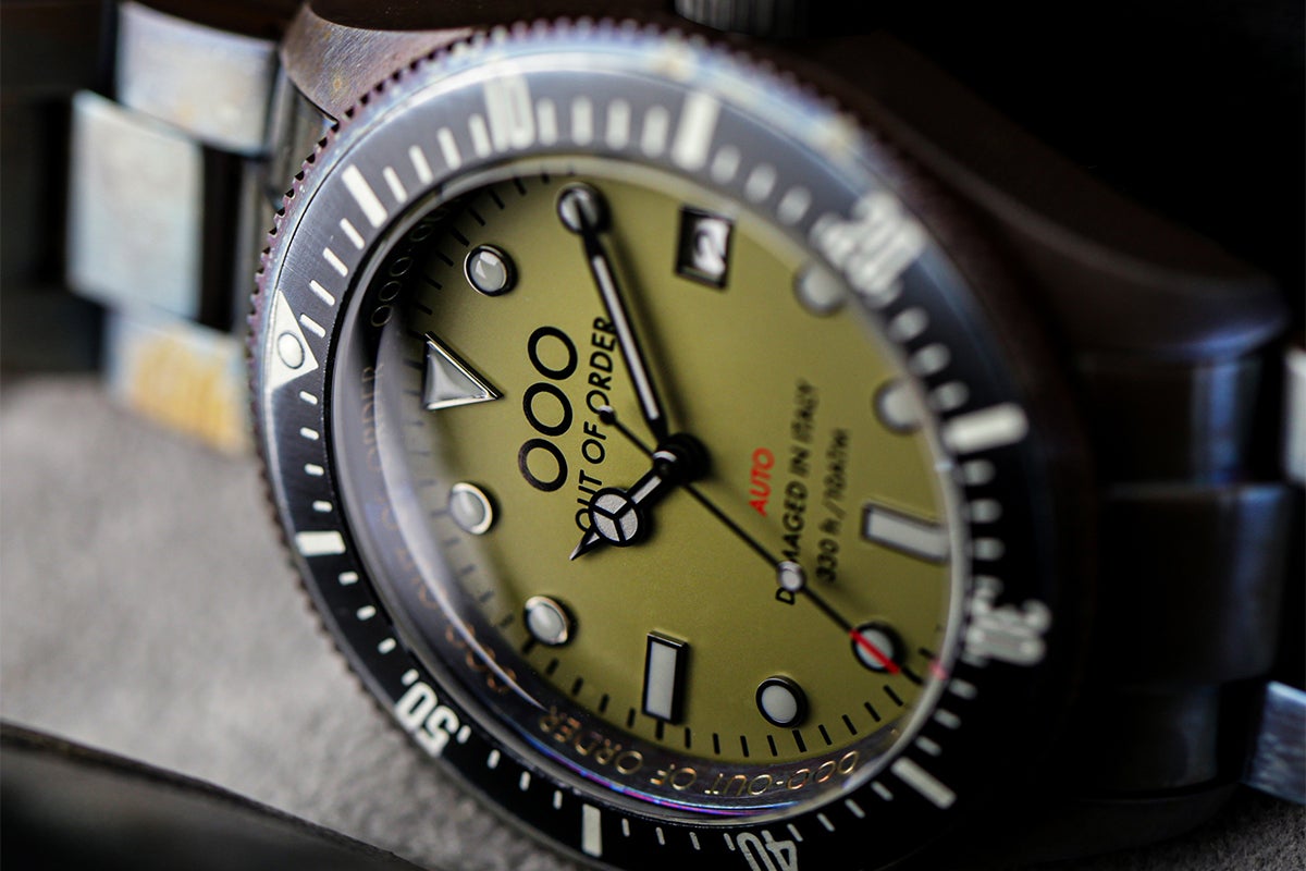 OOO(Out Of Order)の時計は、本体にあえてサビや長年使ったような汚しをつけ、
