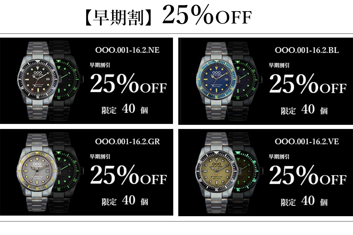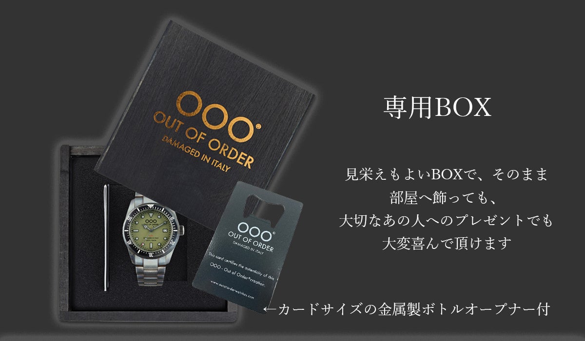 当プロジェクトのOOO(Out Of Order)は、確かな品質の時計ながら、オリジナルのヴィンテージ加工が生み出す独特の雰囲気があり、新たな腕時計のあり方を提案したいと思い、プロジェクトをスタートいたしました!