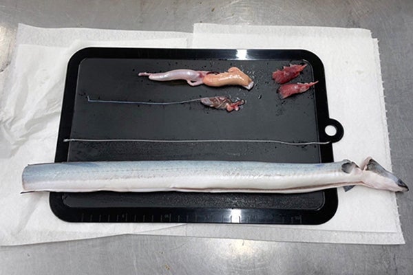 一匹ずつ丁寧に処理しています心臓、肝、エラ、神経など