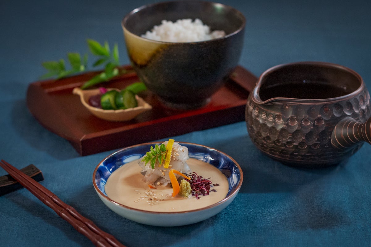 ゴマ茶漬け:ゴマをすってペーストにし、ヅケだれと合わせてゴマだれにしたものに『龍鰻』 を漬けてお届けします。