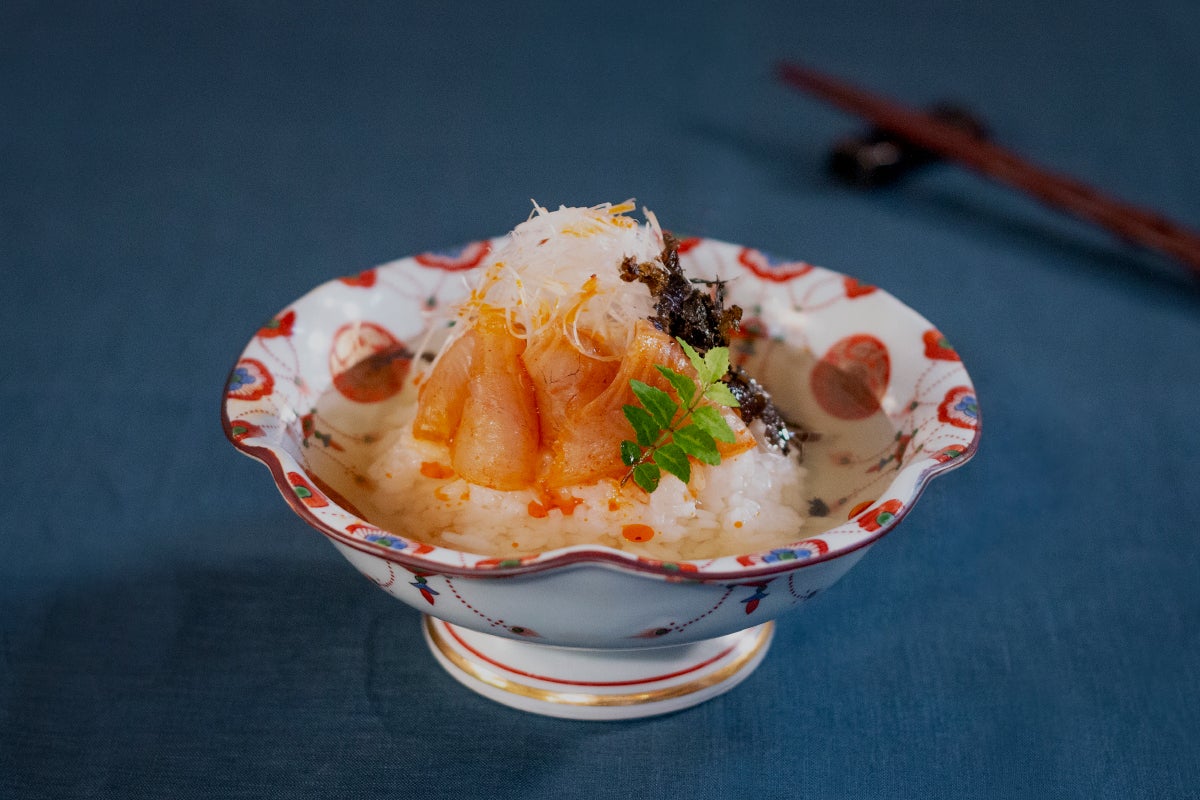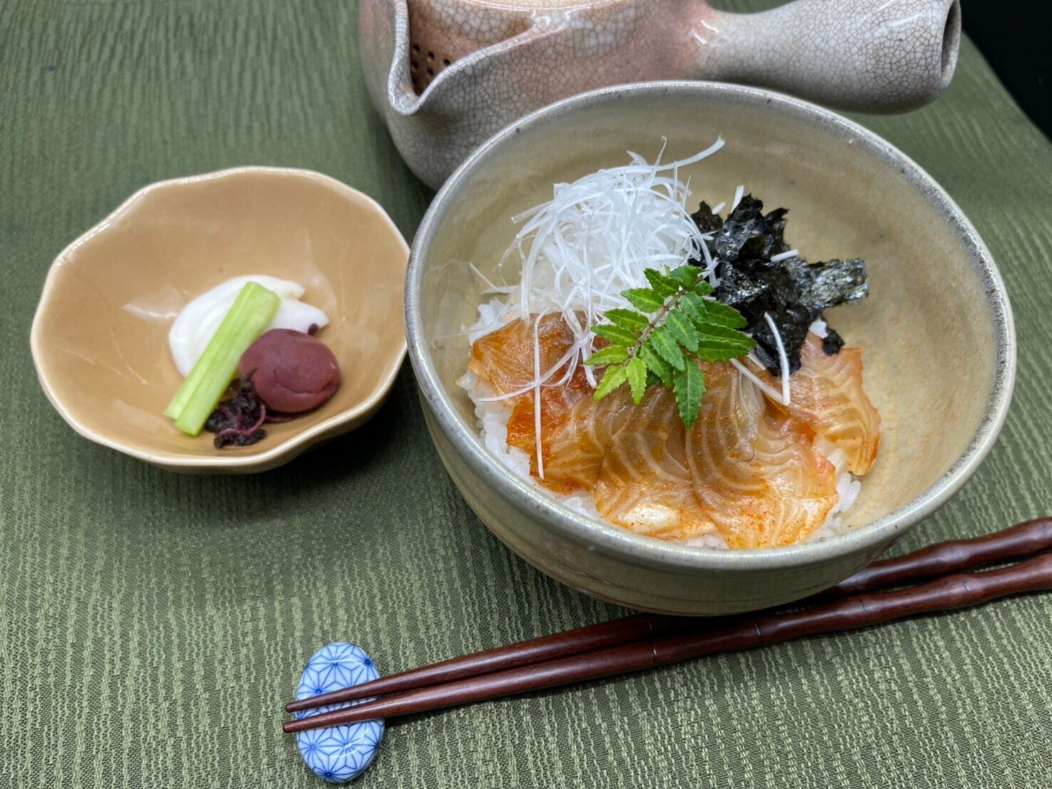 旨辛茶漬け:鰹節と調味料と唐辛子で作った特製だれに『龍鰻』 を漬け込んでお届けします。