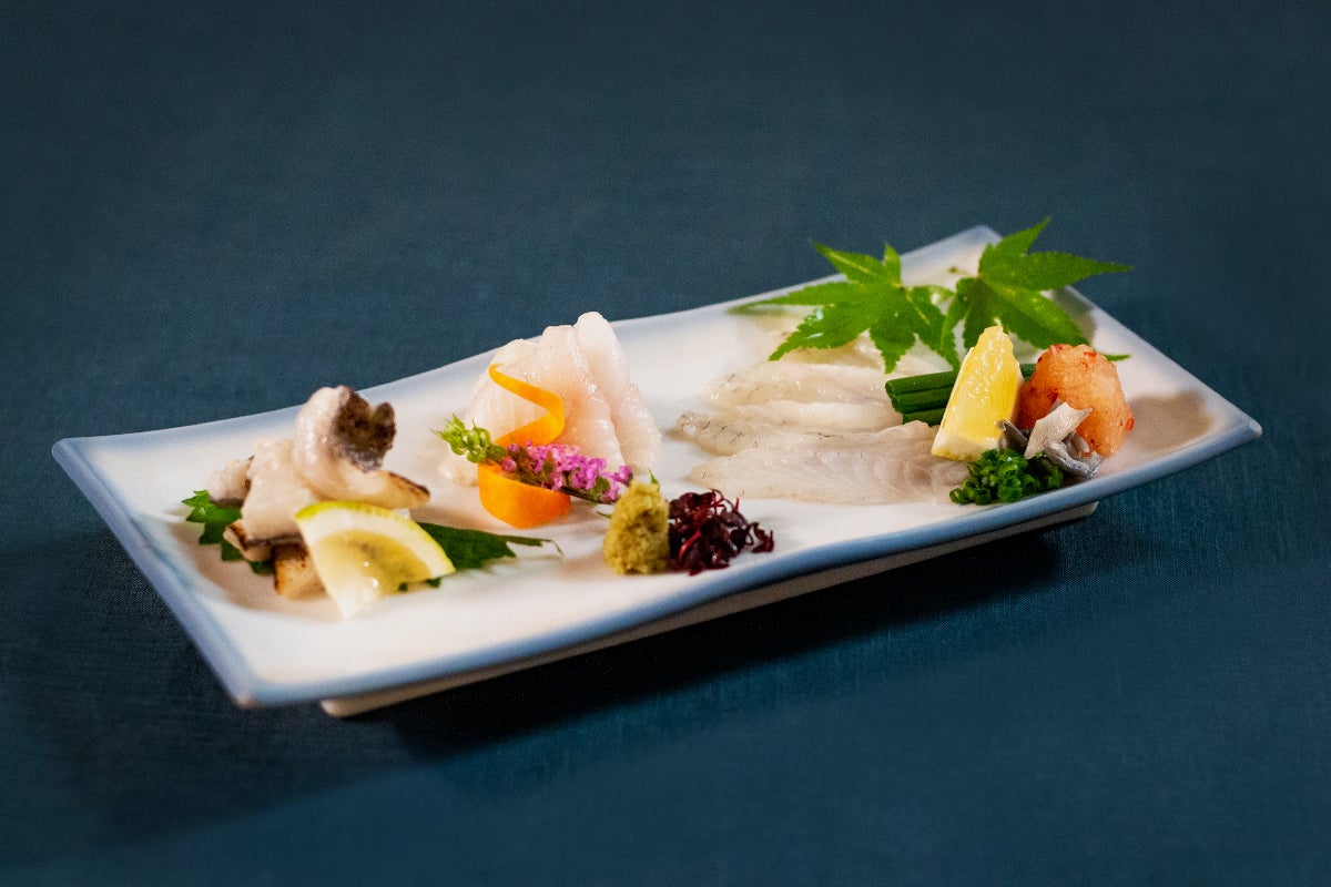 熟成刺身、創作寿司(昆布締め、あぶり、軍艦、漬け)、等