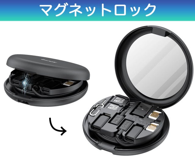 開閉にはマグネット方式を採用、カバンの中などで荷物が散乱しないようにしっかりとロック、それでいて開けるのは簡単でとても便利です!