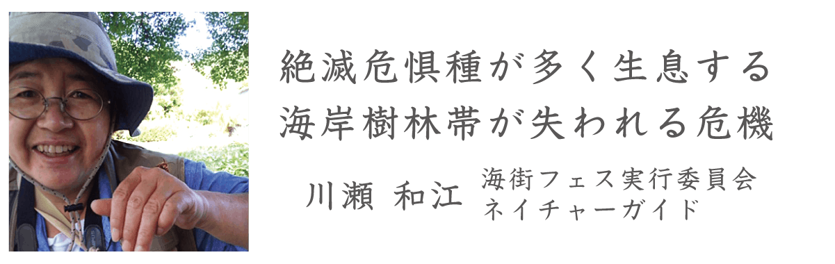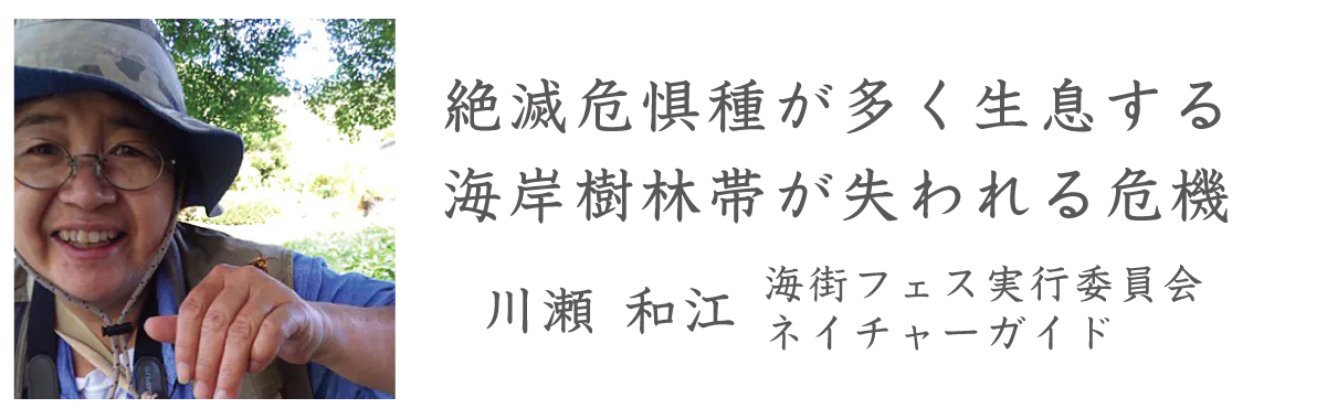 2021/11/22 17:15令和3年10月24日に第3回海街フェスを開催いたしました。当日は1,000人に及ぶ多くの皆様においでいただき、事故もなく無事に終了することができました。ご来場の皆様はじめ、事前のチラシ掲載や配布を通じて意識の拡散にご協力下さった皆様、キャンプファイヤーを通じてフェスの運営を応援して下さった方々に深く感謝致します。海街フェスの目的はなんですか?と聞かれると、私達はこう答えます。フェスを開催するのは、様々な世代の人に海岸樹林帯の中を歩いてもらうことで、この森が災害の被害を小さくすることや、多様な動植物が暮らす豊かな森であることを、より多くの人に感じでもらうことができるからです。現場に来て五感を使って観察してもらうと、大切なものが見えてきます。すぐ近くの国道を走る車の騒音をも消してしまう森の中にいると、このモリモリと成長した木々の枝葉が強風や津波の侵入を阻むことに気づきます。40年前、湘南は小さな松しか生えていない海岸でした。沿岸に暮らす人々は風、砂、塩の害に苦しめられていました。そこで神奈川県は3万人で30万本の木を植えるフェスティバルを開催し、「1本切ったら2本植える」を合言葉に海岸林を植え育ててきました。そのおかげで後の世代の私達は、海岸林の恩恵を受けて暮らしています。今年の4月に沿岸住民が行なった塩害風害調査で、海岸林が風や塩を弱めていることが実証されました。気候変動により自然災害が頻発するこの時代に、開発のために海岸林を破壊するようなことがあってはなりません。一方、津波により海岸林を失った岩手県、宮城県、千葉県は熱心に海岸林を再生しようとしています。海岸林が確かに津波を弱めたことを身をもって知っているからです。海岸林は先人が先見の明を持って育ててくれた財産です。私達にできることは、この樹林帯を後の世代にしっかり残してあげることだと思います。海街フェス実行委員会代表 有川和香恵 もっと見る