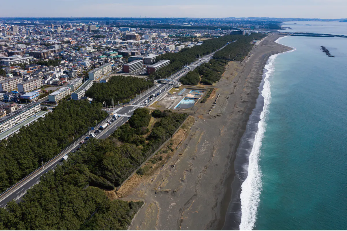 大型台風が来るたびに砂浜は削られ、海と街の距離が近づいています。