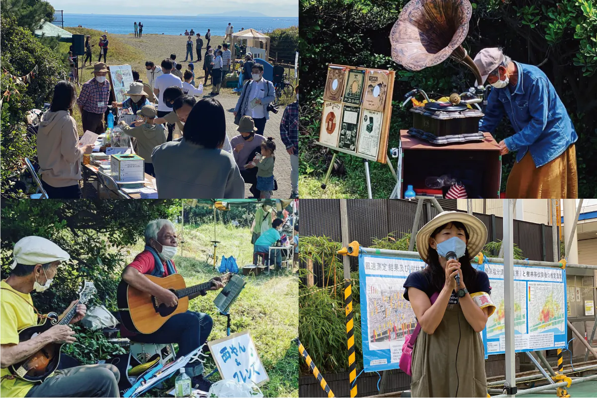 地域で子育て真っ最中の女性達に樹林帯保全への共感の輪が広がり、自治会長さん達を巻き込み、フリーマーケットや音楽という形で若者達が協力し、地域にこんなに豊かな自然が残っていることを五感を使って感じてもらうことをテーマに2020年秋に海街フェスが始まりました。