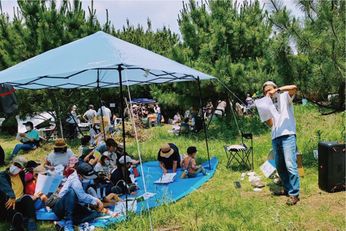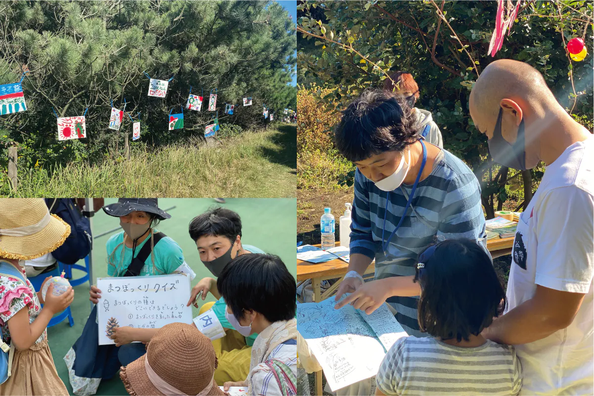 樹林帯を生かして、その中で、子供たちが探検して回れるようなクイズラリー、専門家によるトークイベント、防災等の各種展示を企画し、フリーマーケットや音楽という形で老若男女問わずみんなで作り上げる手作りのイベントです。中学生を含む50名以上のボランティアスタッフが活動を担い、2020年秋に第一回海街フェスが始まりました。