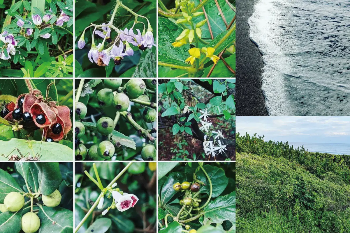 海から吹きつける強風を弱め、また風に乗ってやってくる砂、塩を防ぐ減災効果があります。