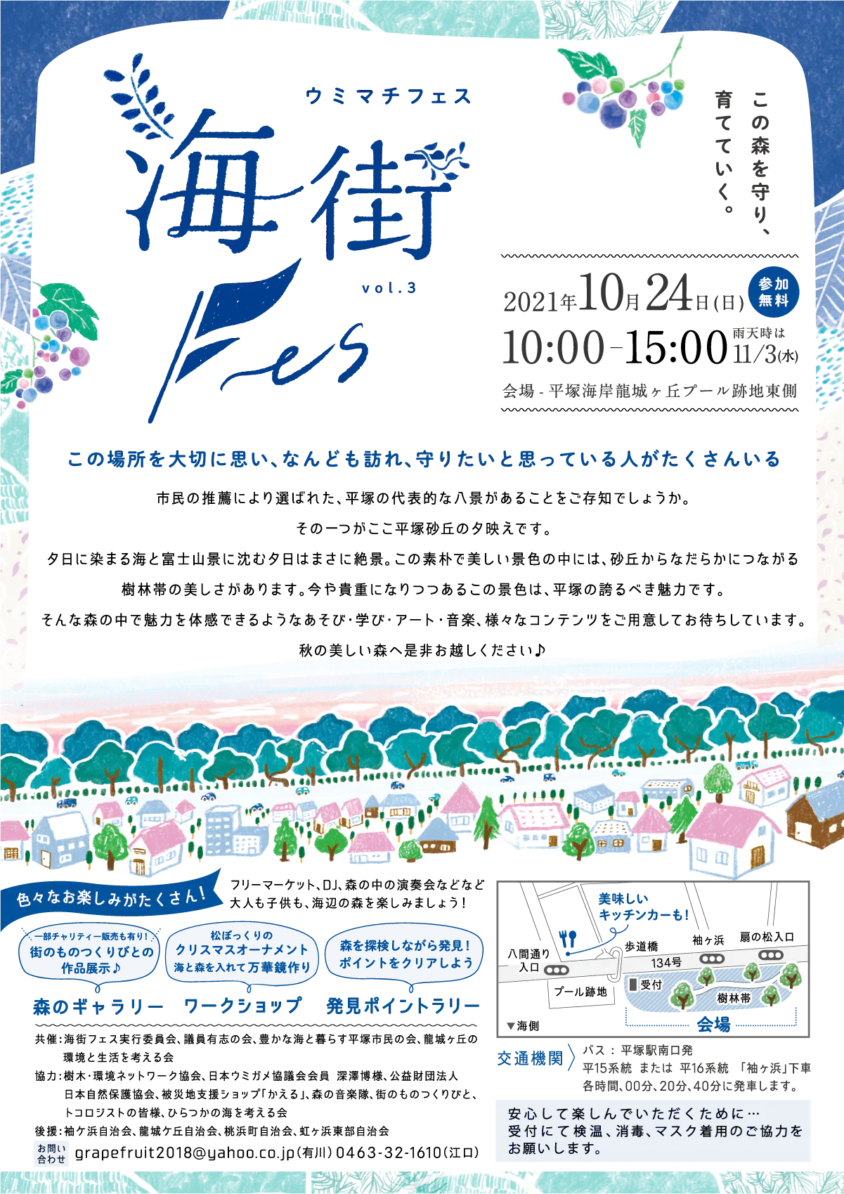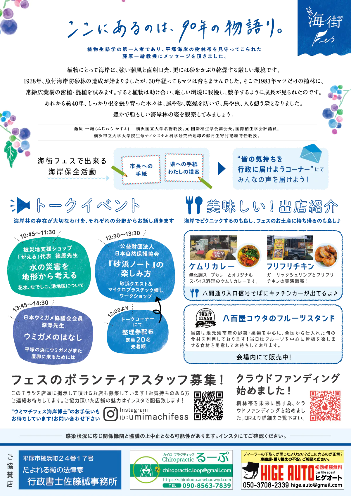 失われる危機が迫っている平塚海岸樹林帯の保護を訴える目的で開催してきたこのフェスも今回で第3回を迎えます。