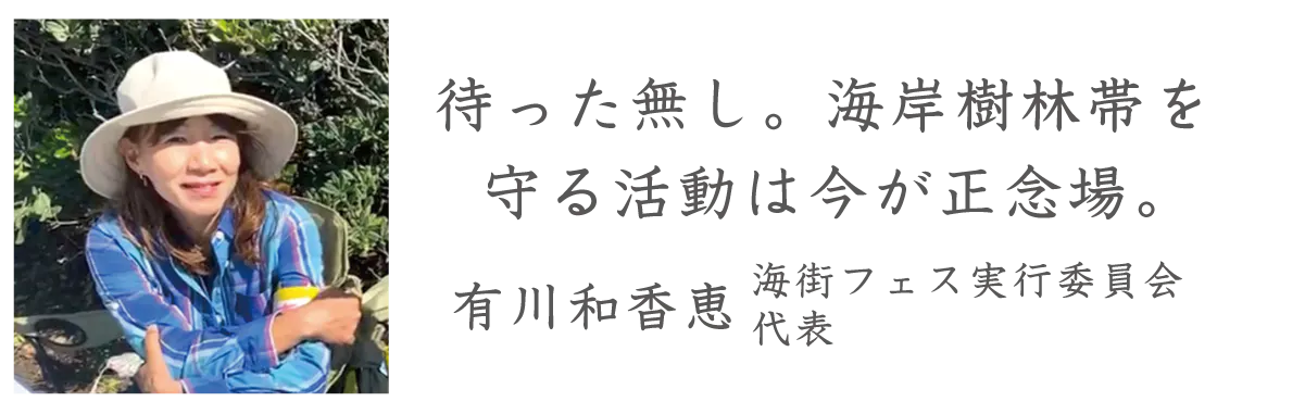 現在ある理想的な海岸林を守っていければ。待った無しの私達の活動を海街フェスを通じて応援してください。