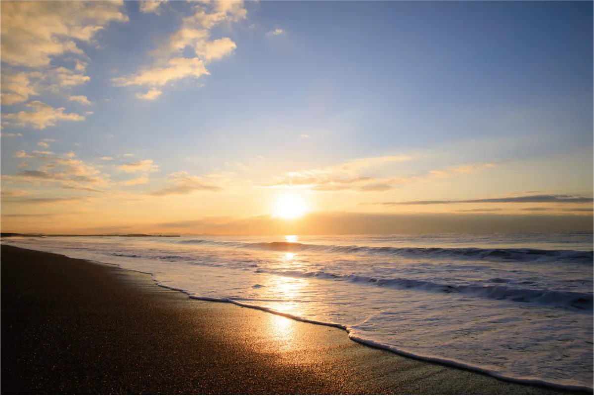 砂丘からなだらかにつながる海岸樹林帯の美しさが、ストロークの長い海岸線の魅力を引き立てています。平塚砂丘の夕映えは、市民によって選ばれた「平塚八景」のひとつになっています。