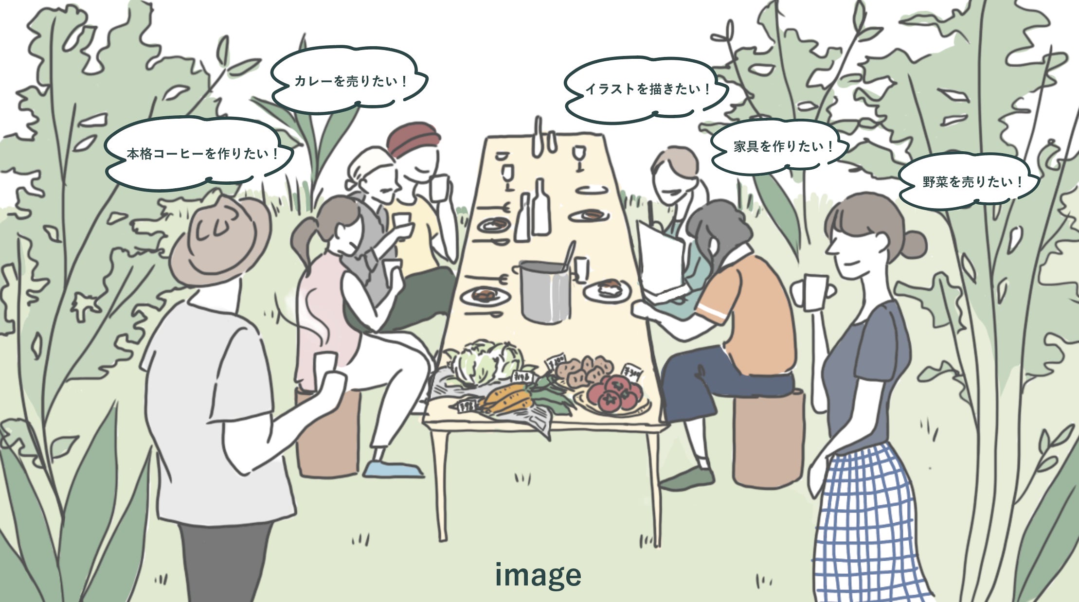 コロナ禍でより深まった課題である「人と人との距離感」を議題にどのような場をつくりたいかを話し合い、出てきたアイデアが “趣味を副業にできる拠点“ でした。