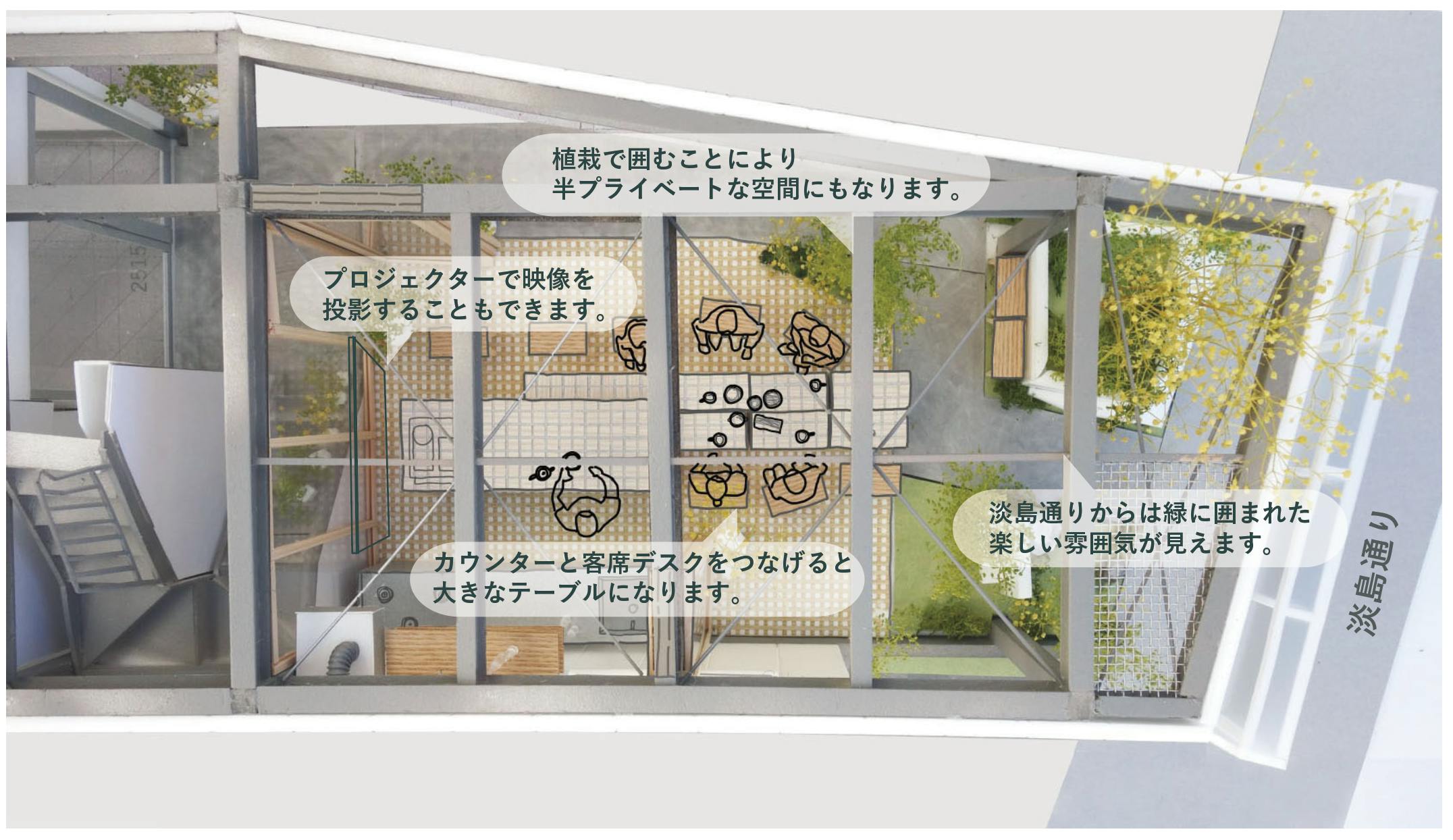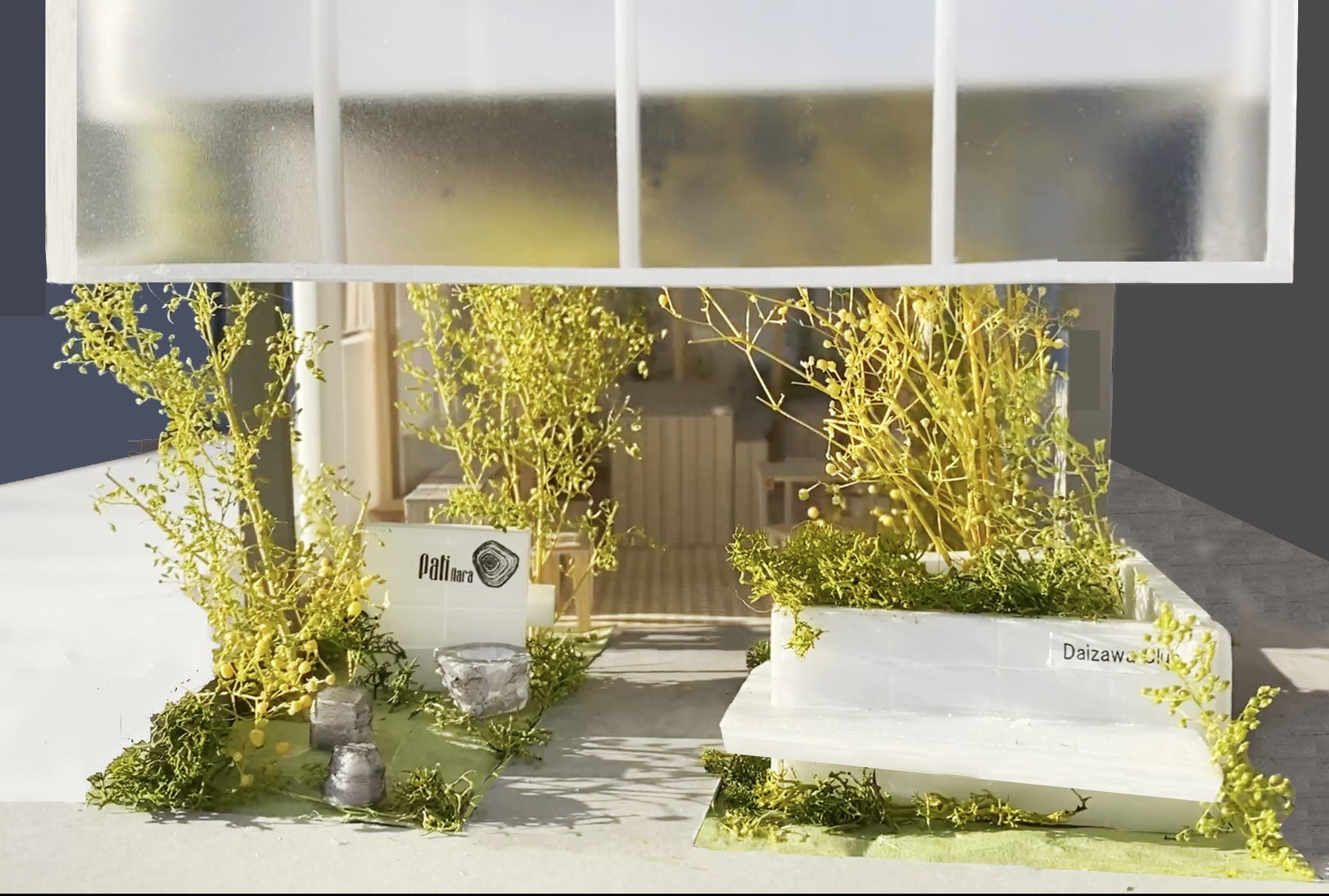 私たちはこのプロジェクトをこの1店舗でとどまらせることなく、次の店舗も視野に入れて今後も活動をしていきます。2店舗、3店舗目にはシンボルツリーとしてタモの木やカシの木などを植え、「Pati tamo」「Pati kashi」のように都市に緑あふれる空間を増やして行くことを目標にしています。そしてその先に、産業や環境が抱えている課題を建築とデザインの視点で解決する事を目指しています。