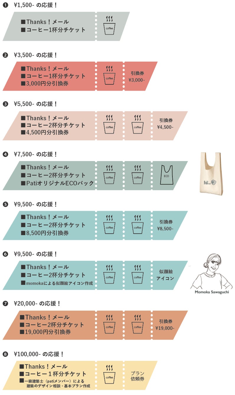 その材料費として、大切に使わせて頂きたいと思います。素敵な内装をご用意し、皆さんとPatiで集まれることを楽しみにしています!