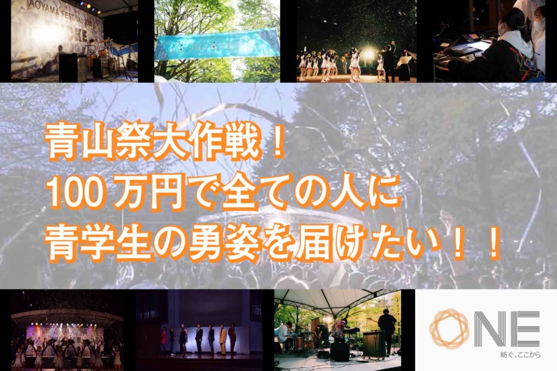 予算で賄い切れないことは我々の責任であり、皆さまにお力添えをお願いすることは大変苦渋の決断ではありました。それでも、私たちは青学生や来場者の皆さまあっての「青山祭」であると考え、3日間の青山祭をかけがえのないものとすべく、こうしたお願いをするに至りました。2021年度青山祭テーマ「ONE~紡ぐ、ここから~」のもと、支援いただいた皆さまと1つになって、これまで以上の青山祭を創り上げられることを、実行委員一同、本当に楽しみにしています!