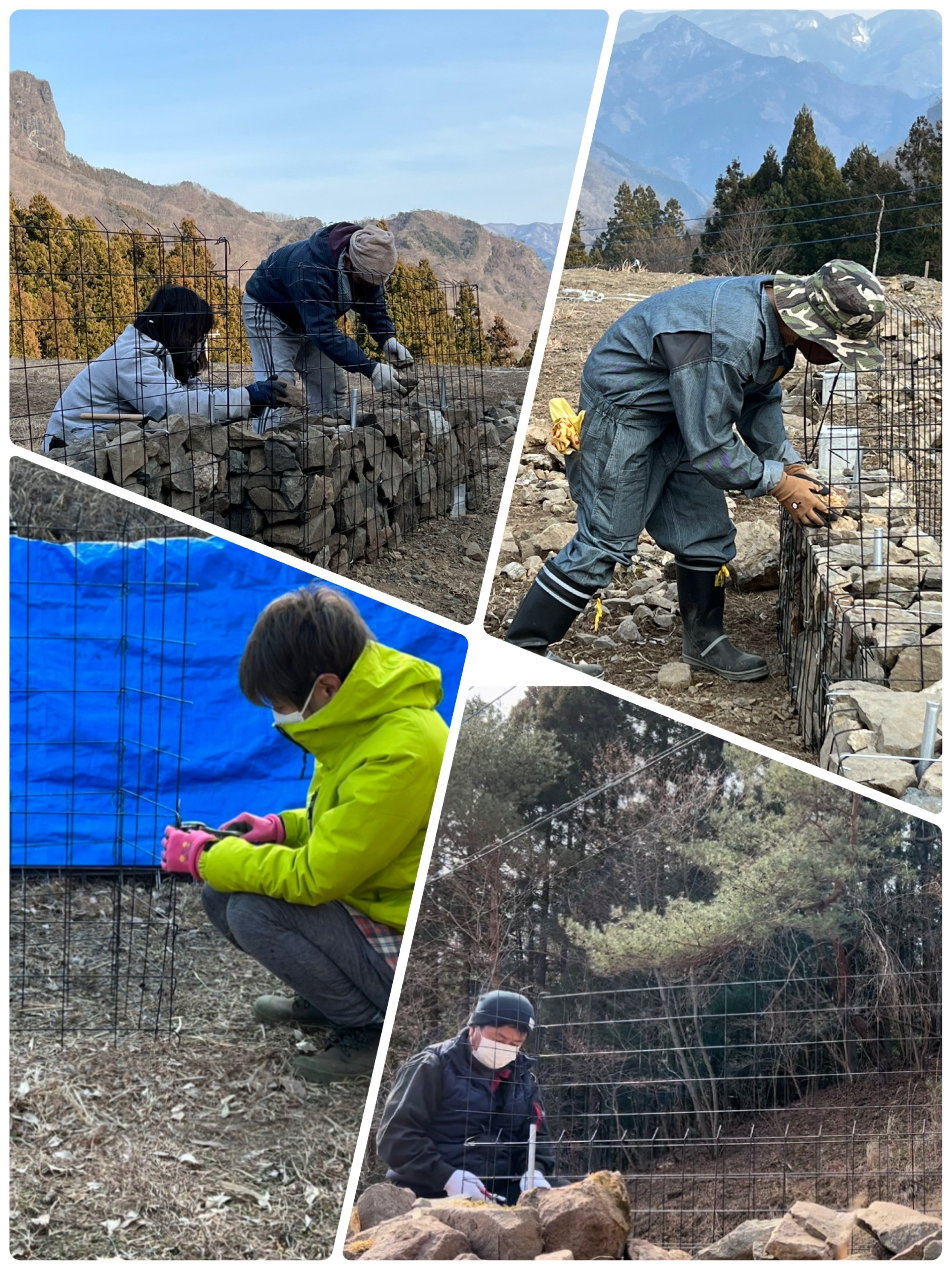 サイト内から出た石を活用できないか?考えて・・ガビオン(石をメッシュに詰めた塀)にすることにしました。私を含めて皆さん、初めてという事なのですが雰囲気あるガビオンに仕上がっています。このガビオンには作成者のお名前をプレートにして付けたいと思います。▶助っ人(Instagramアカウント名)@otsuka_masashi@mii.7719@noriyoishii匿名希望さんと彼女さん▶前回の石拾いの助っ人@kinomayo0803お手伝いありがとうございます!感謝です。