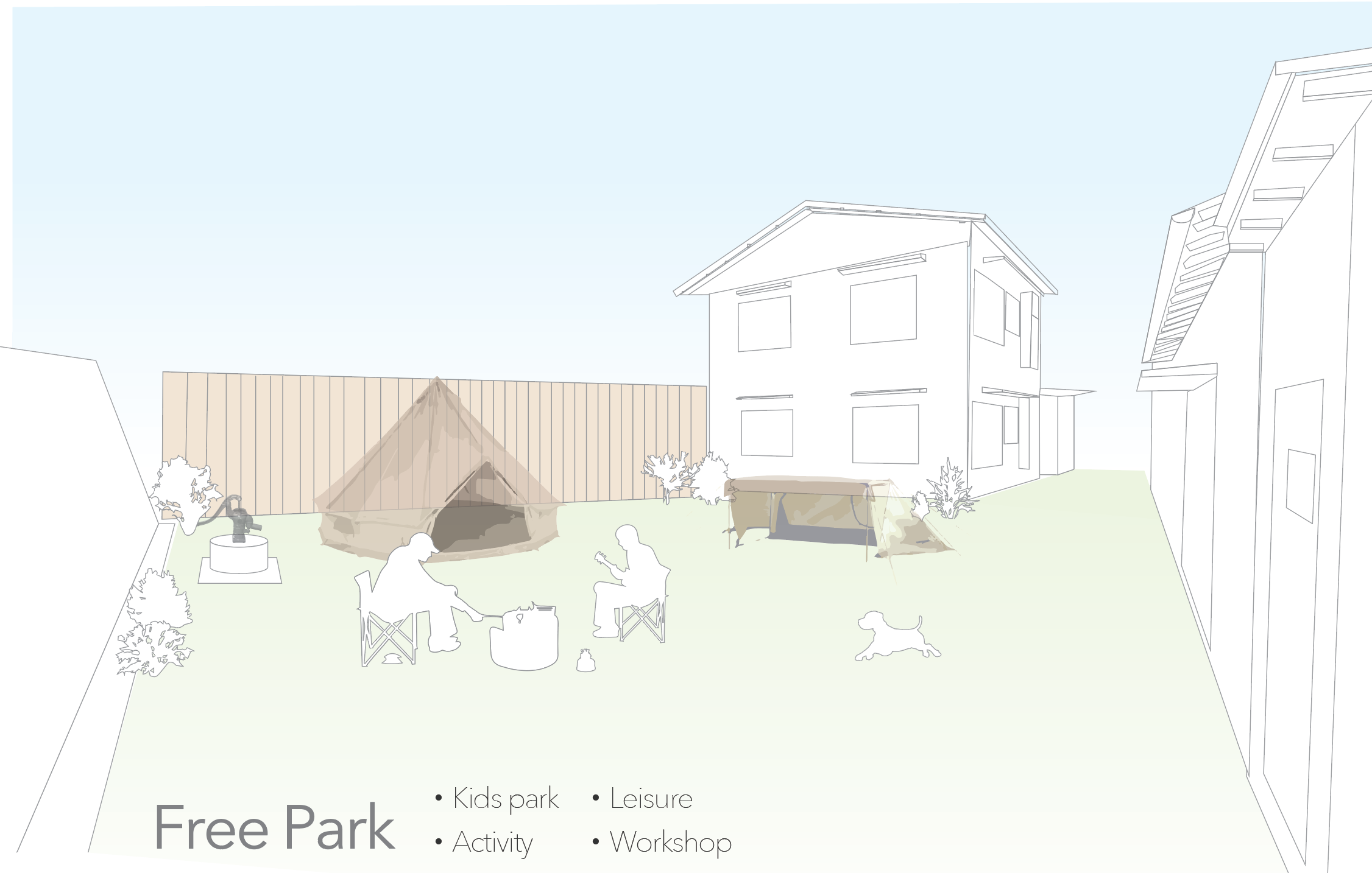 元々大家さんが居住していた母屋は解体しワークショップやイベント、プライベートキャンプなど、様々な目的に使用できる広場へと改修します。